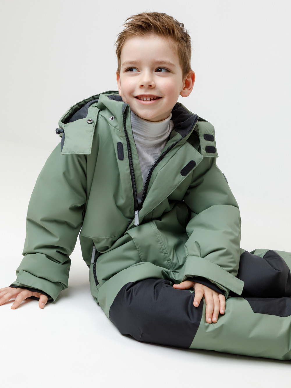 Зимний комбинезон для мальчика с утеплителем SEE®: 250 г/м2 . Выполнен из мембранной ткани с дополнительной тефлоновой обработкой, которая предохраняет изделие от загрязнений и отталкивает влагу. Подклад выполнен из 100% полиэстера Tricot. Комбинезон застёгивается на молнию и внешнюю планку на липучках и кнопках, предусмотрена защита подбородка. Съёмный капюшон имеет эластичную утяжку со стопперами. Резинка по спинке обеспечивает лучшее прилегание. По бокам два кармана на молнии. На рукавах дополнительние внутренние манжеты, ширина регулируются с помощью липучки. Внутренняя противоснежная юбка по низу изделия защищает обувь от попадания снега и удерживает комбинезон в закреплённом положении. В размерах с 98-104 по 116-122  предусмотрены отстёгивающиеся штрипки. Во всех изделиях верхнего ассортимента для безопасности ребёнка предусмотрены светоотражающие элементы.