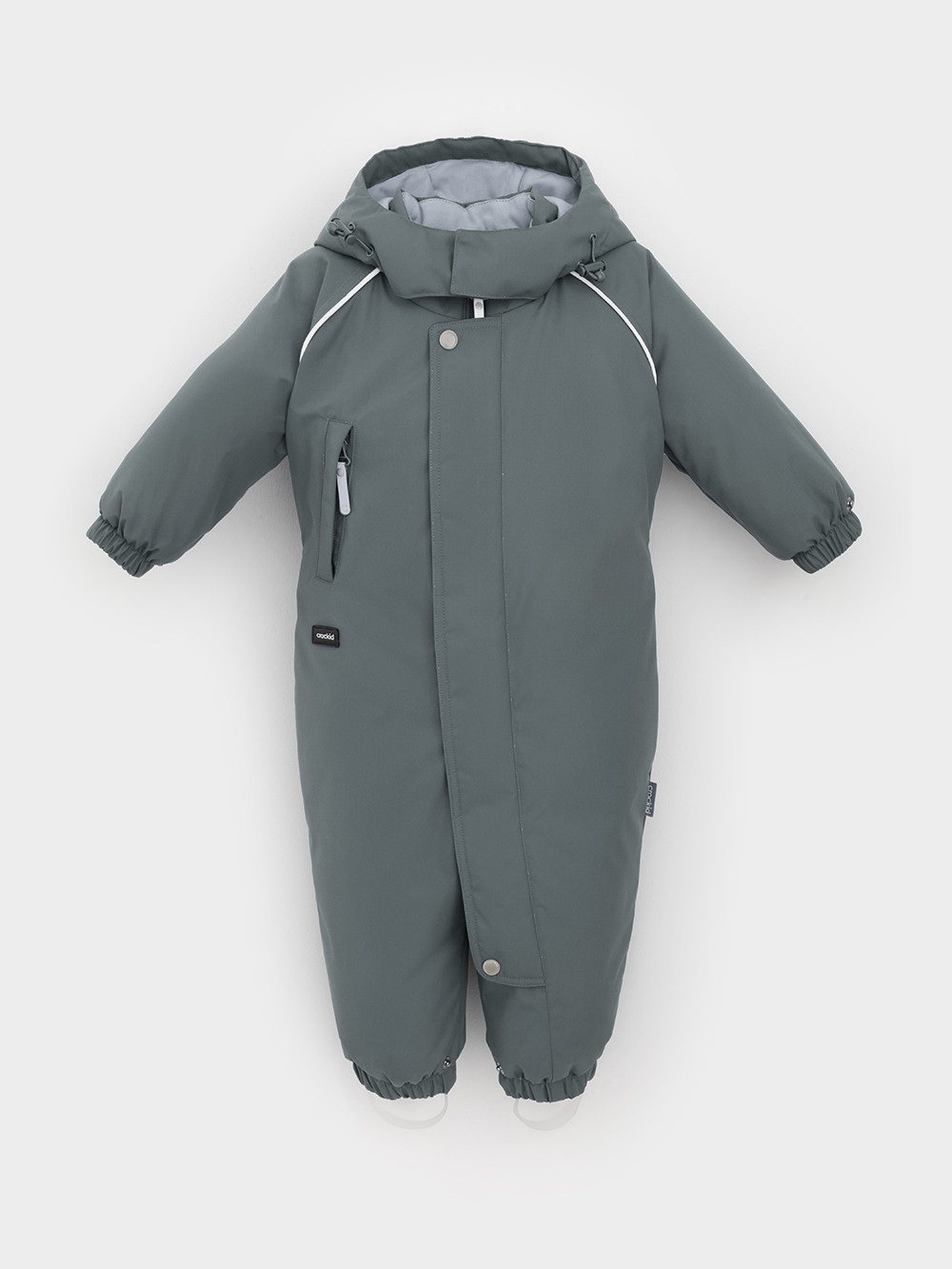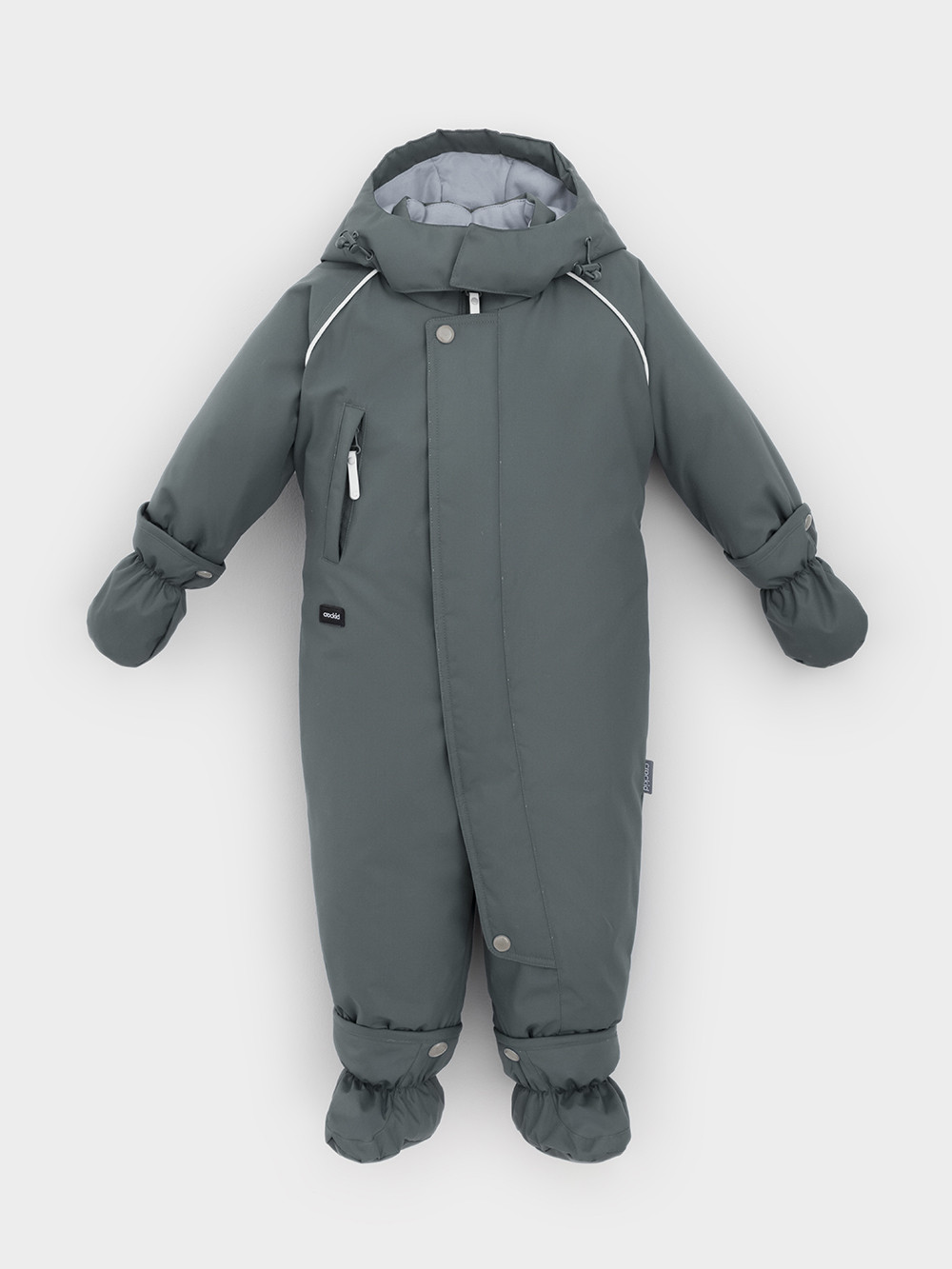 Зимний комбинезон ясельный с утеплителем SEE®: 250 г/м2. Выполнен из мембранной ткани с дополнительной тефлоновой обработкой, которая предохраняет изделие от загрязнений и отталкивает влагу. Подклад выполнен из 100% хлопка. Комбинезон застёгивается на молнию и внешнюю планку на липучках, предусмотрена защита подбородка. Несъёмный капюшон имеет эластичную утяжку со стопперами. Резинка по спинке для лучшего прилегания. На груди карман на молнии. По рукавам и низу изделия эластичные манжеты, на ножках отстёгивающиеся силиконовые штрипки. В размерах 74-80 и 80-86 в комплекте идут рукавицы и пинетки. Во всех изделиях верхнего ассортимента для безопасности ребёнка предусмотрены светоотражающие элементы.