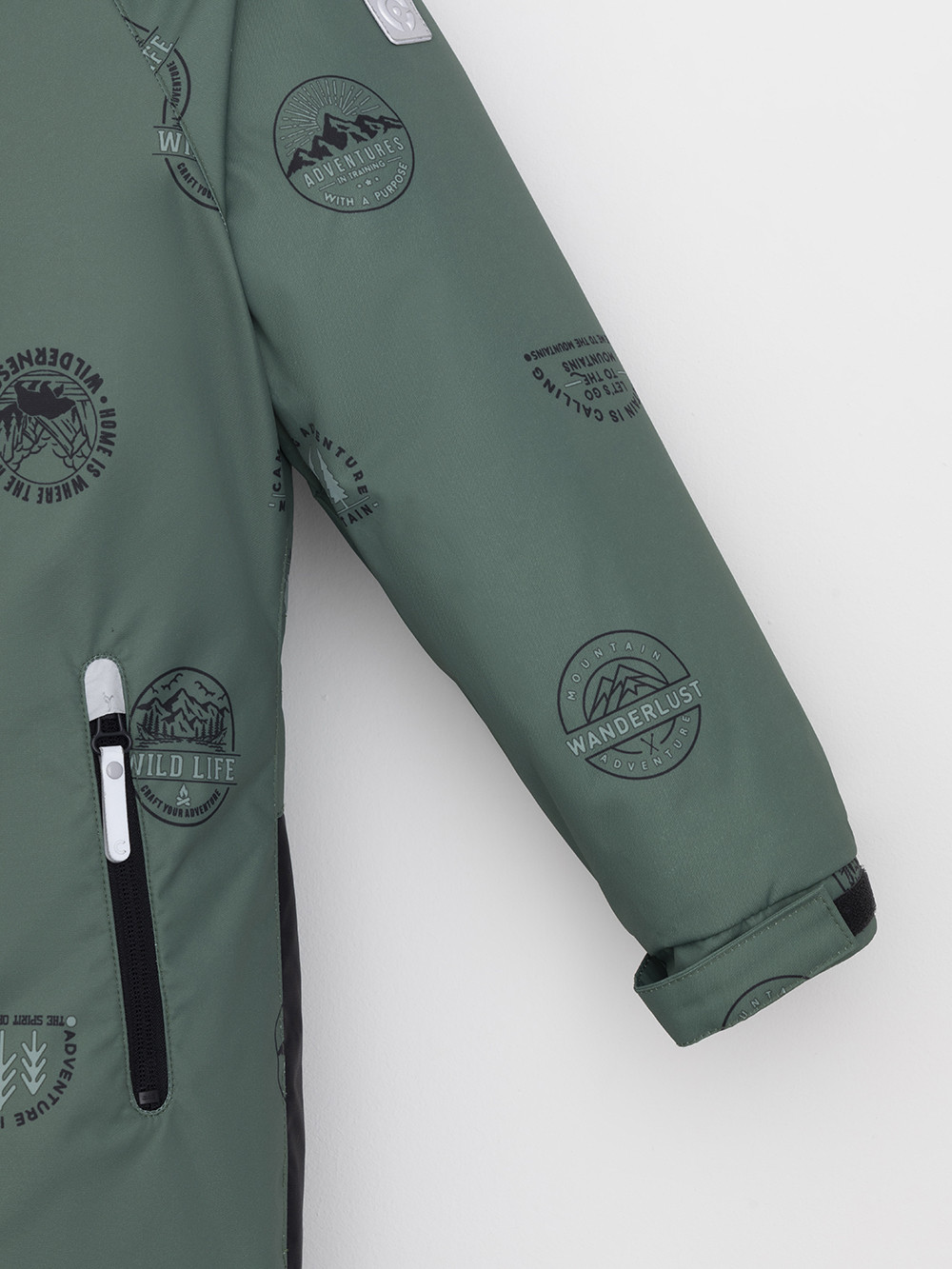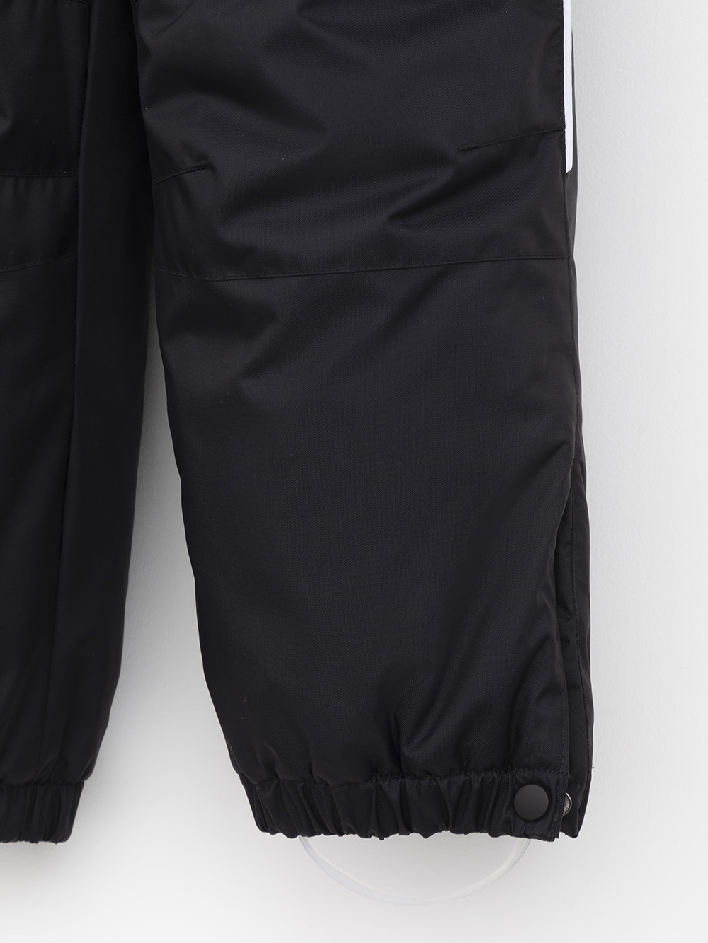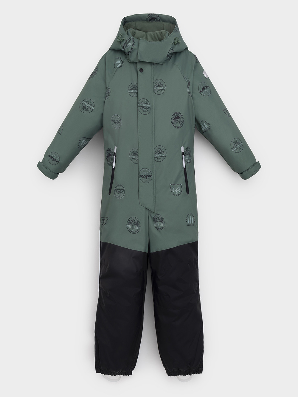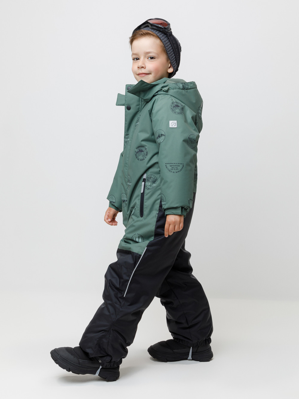 Зимний комбинезон для мальчика с утеплителем SEE®: 250 г/м2 . Выполнен из мембранной ткани с дополнительной тефлоновой обработкой, которая предохраняет изделие от загрязнений и отталкивает влагу. Подклад выполнен из 100% полиэстера Tricot. Комбинезон застёгивается на молнию и внешнюю планку на липучках и кнопках, предусмотрена защита подбородка. Съёмный капюшон имеет эластичную утяжку со стопперами. Резинка по спинке обеспечивает лучшее прилегание. По бокам два кармана на молнии. Эластичные манжеты на рукавах  регулируются по ширине с помощью липучки, по низу изделия - с помощью кнопки. Внутренняя противоснежная юбка защищает обувь от попадания снега и удерживает комбинезон в закреплённом положении. В размерах с 98-104 по 116-122  предусмотрены отстёгивающиеся штрипки. Во всех изделиях верхнего ассортимента для безопасности ребёнка предусмотрены светоотражающие элементы.