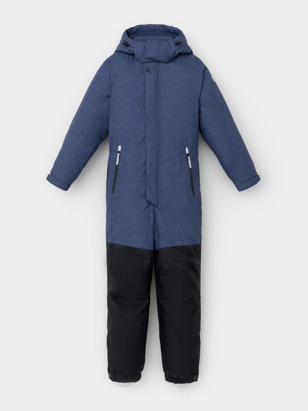 Зимний комбинезон для мальчика с утеплителем SEE®: 250 г/м2 . Выполнен из мембранной ткани с дополнительной тефлоновой обработкой, которая предохраняет изделие от загрязнений и отталкивает влагу. Подклад выполнен из 100% полиэстера Tricot. Комбинезон застёгивается на молнию и внешнюю планку на липучках и кнопках, предусмотрена защита подбородка. Съёмный капюшон имеет эластичную утяжку со стопперами. Резинка по спинке обеспечивает лучшее прилегание. По бокам два кармана на молнии. Эластичные манжеты на рукавах  регулируются по ширине с помощью липучки, по низу изделия - с помощью кнопки. Внутренняя противоснежная юбка защищает обувь от попадания снега и удерживает комбинезон в закреплённом положении. В размерах с 98-104 по 116-122  предусмотрены отстёгивающиеся штрипки. Во всех изделиях верхнего ассортимента для безопасности ребёнка предусмотрены светоотражающие элементы.