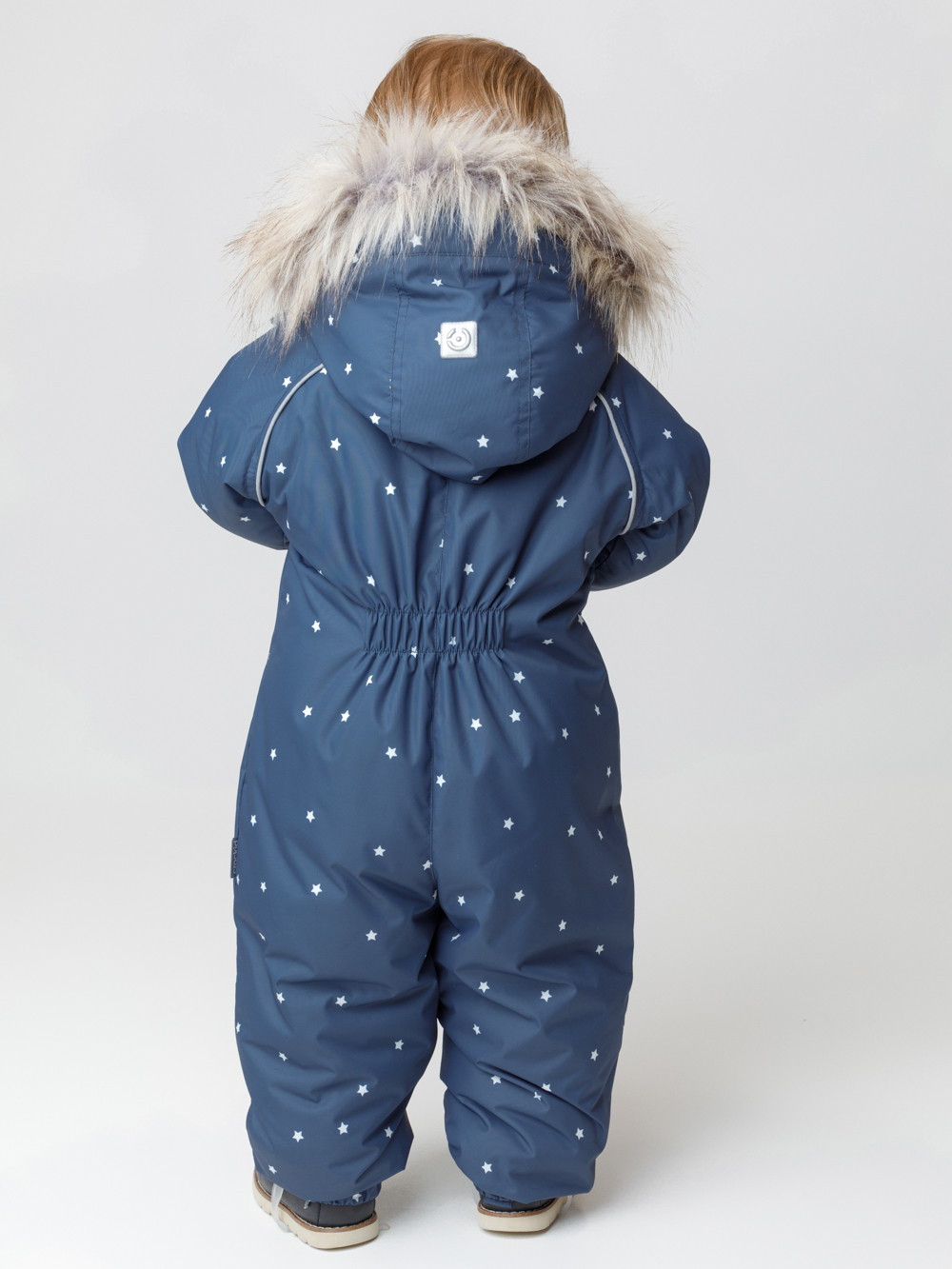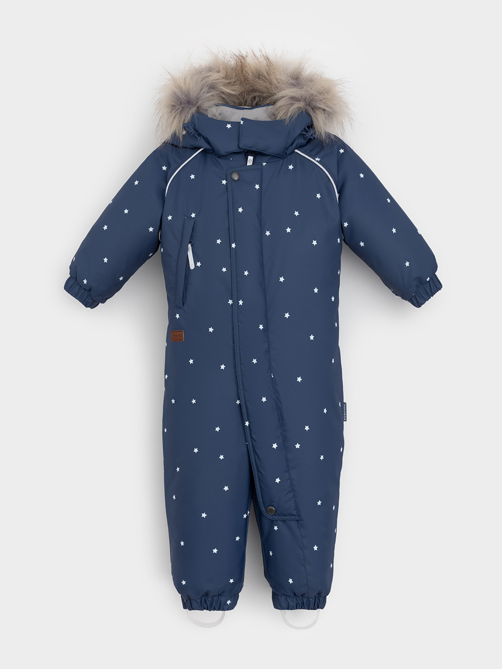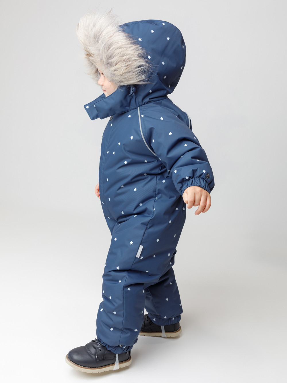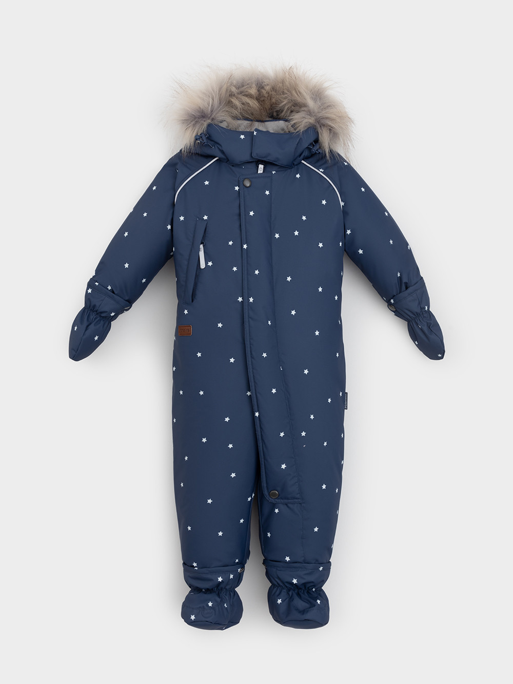 Зимний комбинезон ясельный с утеплителем Fellex®: 300 г/м2. Выполнен из мембранной ткани с дополнительной тефлоновой обработкой, которая предохраняет изделие от загрязнений и отталкивает влагу. Подклад выполнен из 100% хлопка. Комбинезон застёгивается на молнию и внешнюю планку на липучках, предусмотрена защита подбородка. Несъёмный капюшон имеет эластичную утяжку со стопперами и отстёгивающийся мех на молнии. Резинка по спинке для лучшего прилегания. На груди карман на молнии. По рукавам и низу изделия эластичные манжеты, на ножках отстёгивающиеся силиконовые штрипки. В размерах 74-80 и 80-86 в комплекте идут рукавицы и пинетки. Во всех изделиях верхнего ассортимента для безопасности ребёнка предусмотрены светоотражающие элементы.