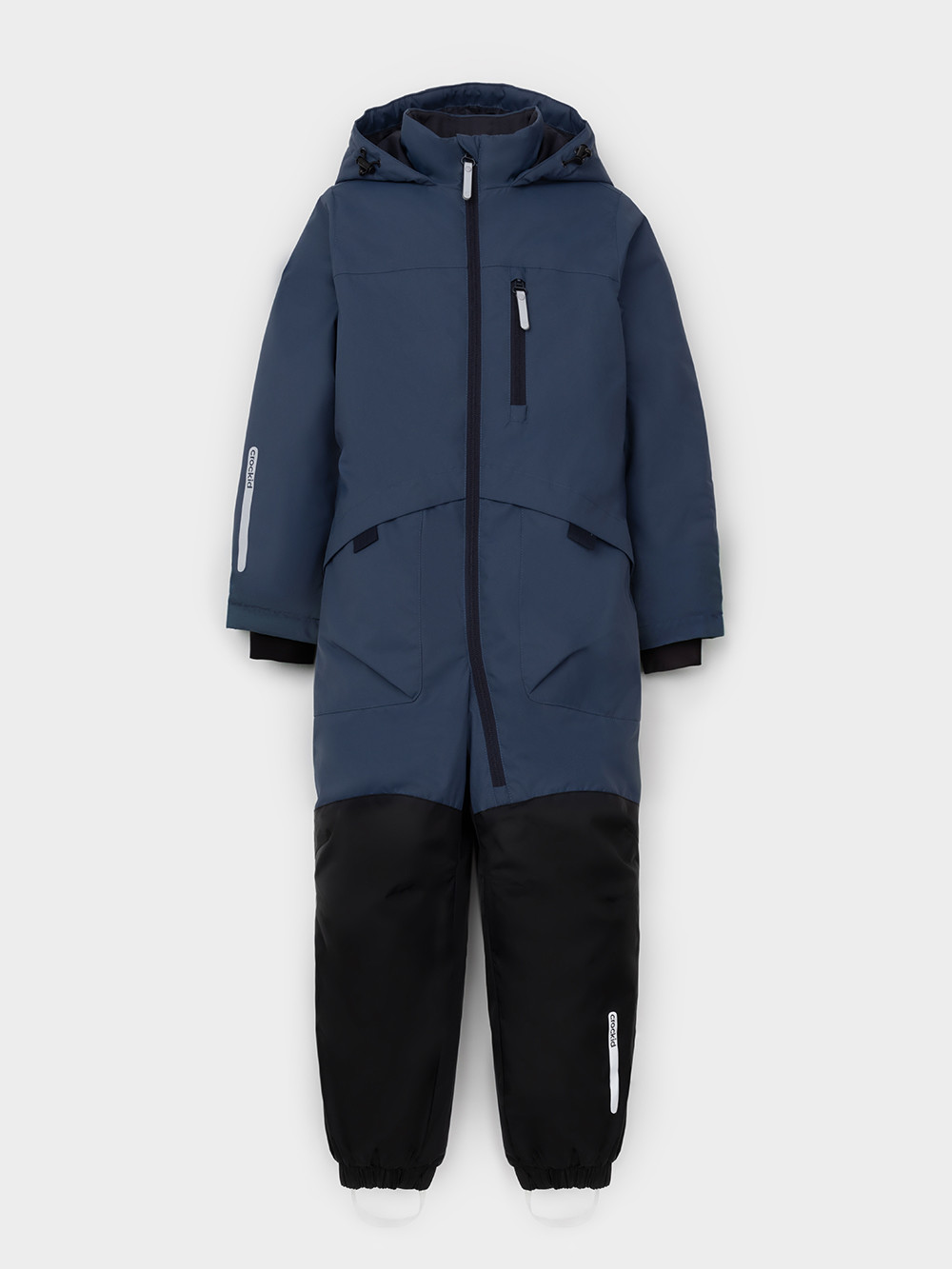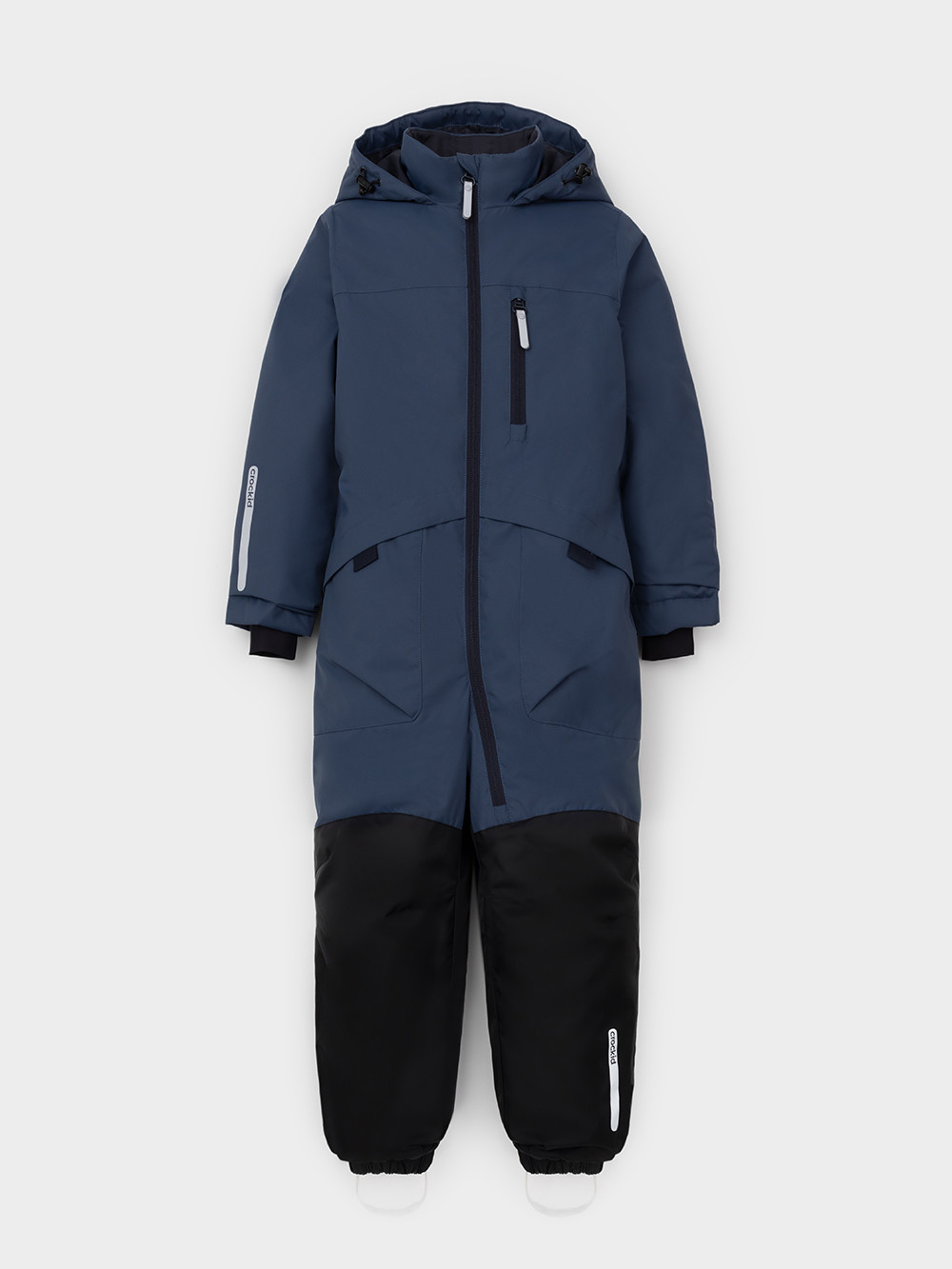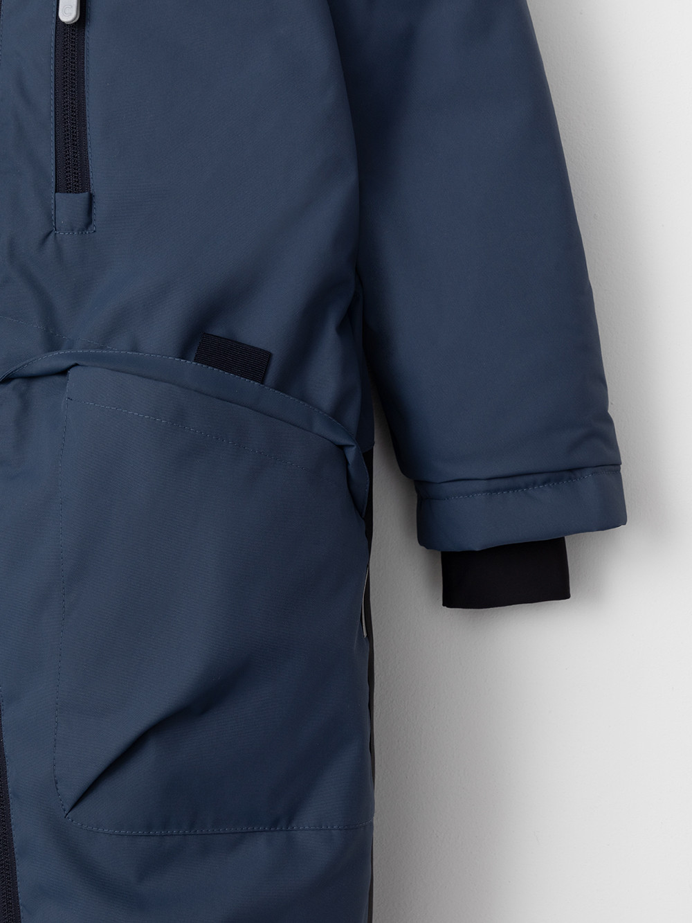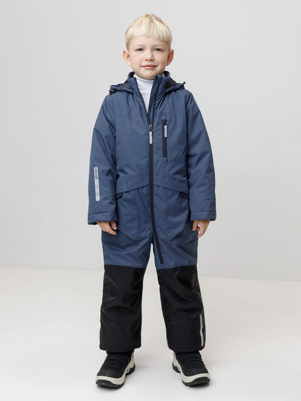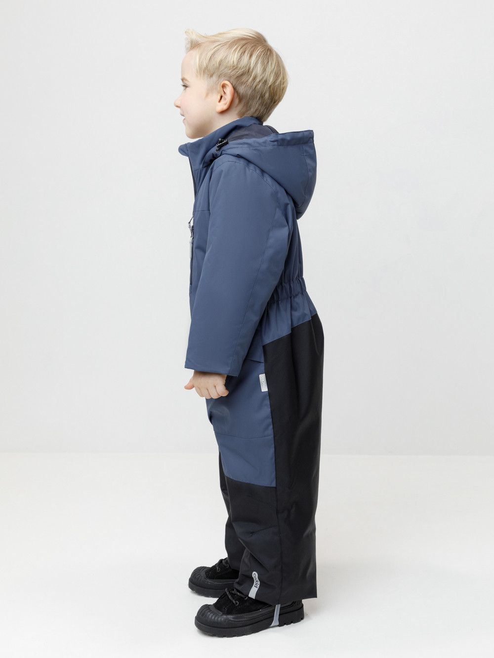Демисезонный комбинезон для мальчика с утеплителем Fellex®, 120 г/м2. Выполнен из мембранной ткани с дополнительной тефлоновой обработкой. Данный вид обработки предохраняет изделие от загрязнения и лучше отводит влагу. Подклад из 100% полиэстера. Для удобного одевания комбинезон застёгивается на удлинённую молнию с защитой подбородка. Капюшон не снимается, по бокам эластичная утяжка со стопперами. Внутри рукавов мягкие манжеты из лайкры. По низу и по спинке изделия предусмотрены эластичные резинки для лучшего прилегания. Для фиксации комбинезона используются съёмные силиконовые штрипки. Во всех изделиях верхнего ассортимента для безопасности ребёнка предусмотрены светоотражающие элементы.