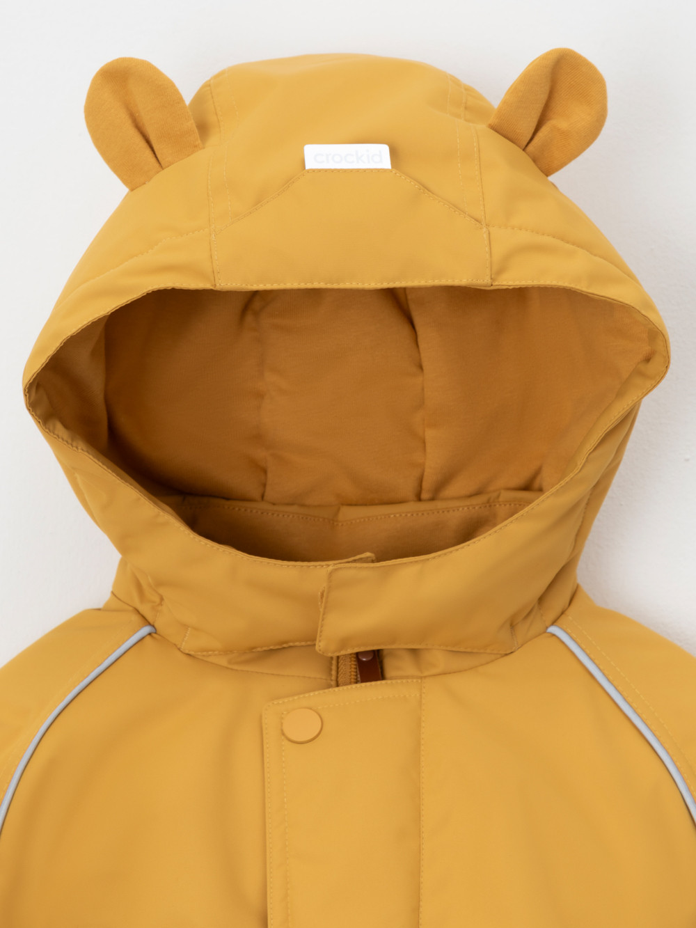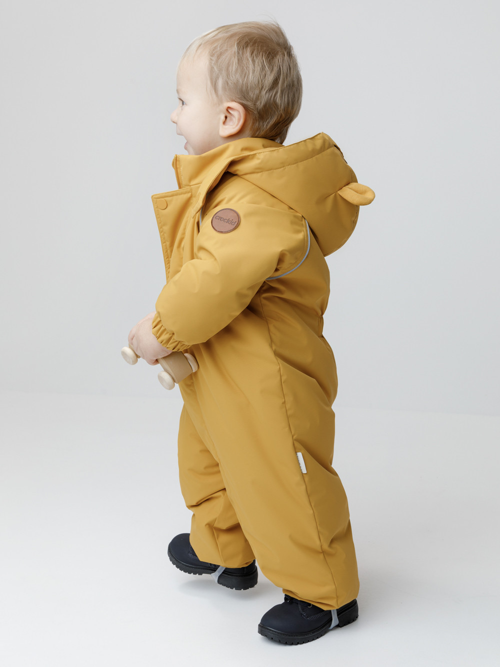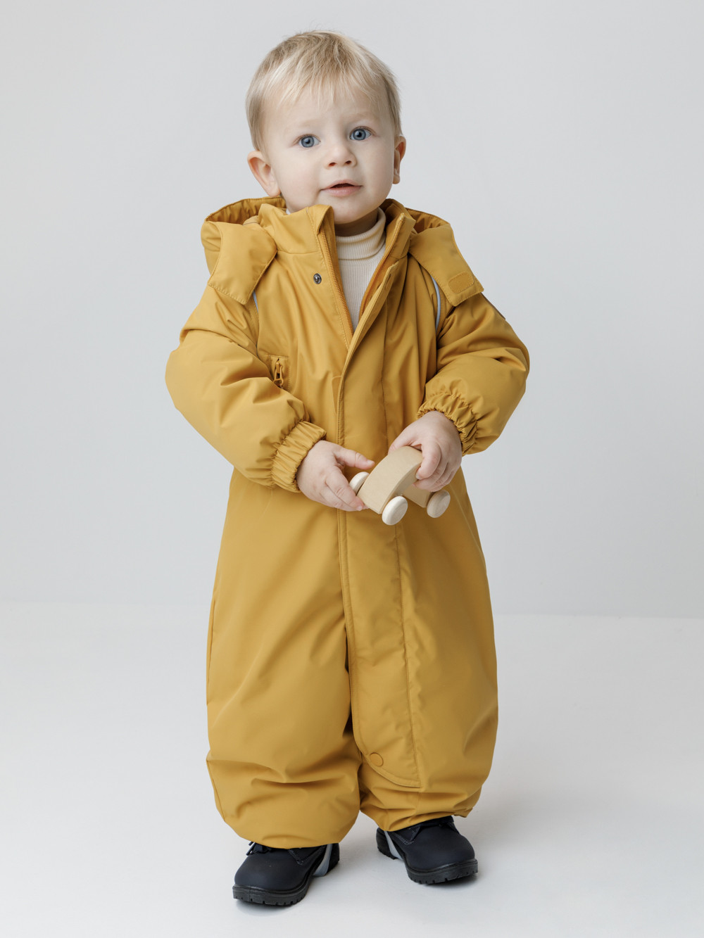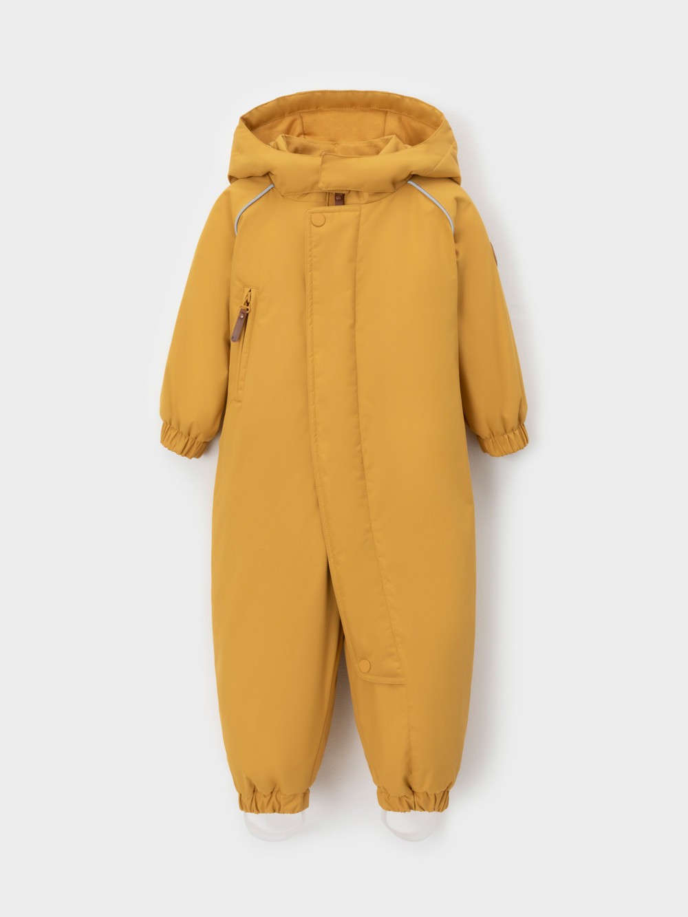 Демисезонный комбинезон ясельный с утеплителем Fellex®, 120 г/м2. Выполнен из мембранной ткани с дополнительной тефлоновой обработкой. Данный вид обработки предохраняет изделие от загрязнения и лучше отводит влагу. Подклад из 100% хлопка. Для удобного одевания комбинезон застёгивается на удлинённую молнию с защитой подбородка. Ветрозащитная планка фиксируется на липучках и кнопках. Утяжка на капюшоне с потайным стоппером. По низу рукавов и брючин, а также на спинке изделия предусмотрены эластичные резинки для лучшего прилегания. Для фиксации комбинезона используются съёмные силиконовые штрипки. В размере 74-80 есть функциональные отвороты на рукавах и брючинах. Во всех изделиях верхнего ассортимента для безопасности ребёнка предусмотрены светоотражающие элементы.