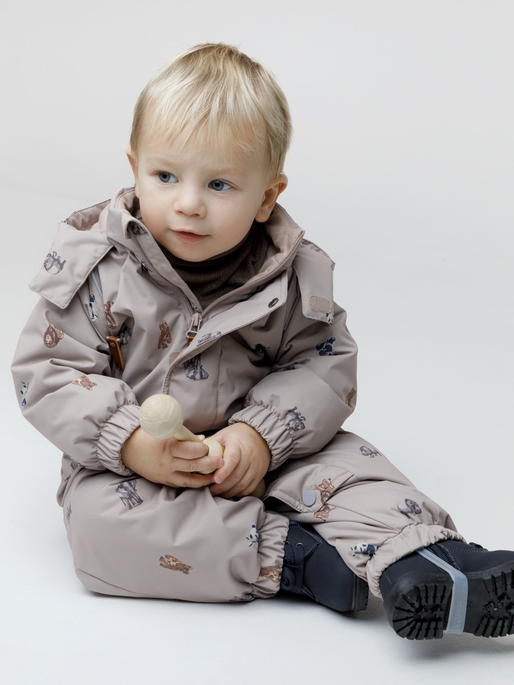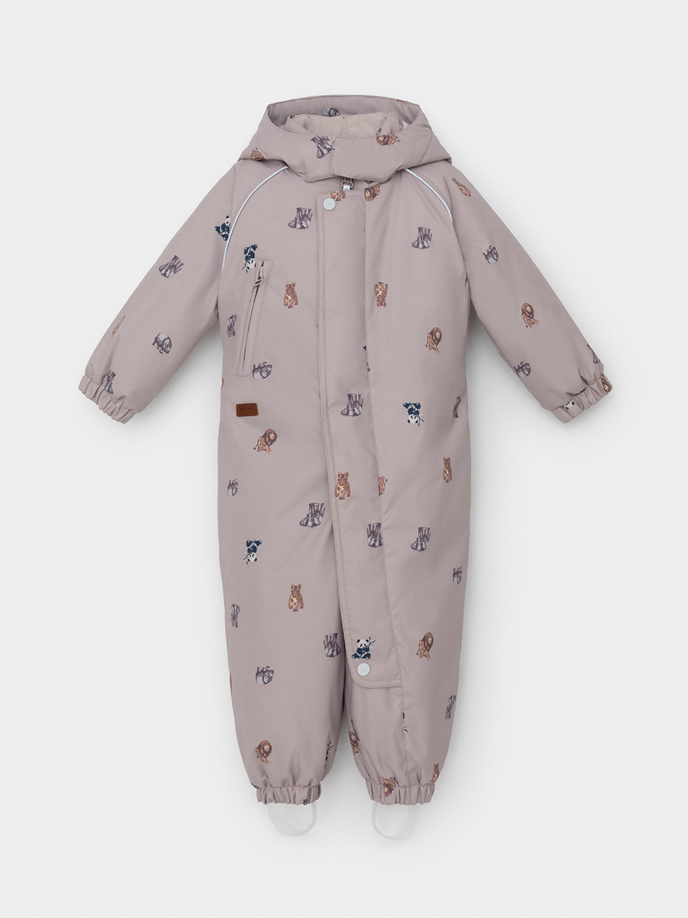 Демисезонный комбинезон ясельный с утеплителем Fellex®, 120 г/м2. Выполнен из мембранной ткани с дополнительной тефлоновой обработкой. Данный вид обработки предохраняет изделие от загрязнения и лучше отводит влагу. Подклад из 100% хлопка. Для удобного одевания комбинезон застёгивается на удлинённую молнию с защитой подбородка. Ветрозащитная планка фиксируется на липучках и кнопках. Утяжка на капюшоне с потайным стоппером. По низу рукавов и брючин, а также на спинке изделия предусмотрены эластичные резинки для лучшего прилегания. Для фиксации комбинезона используются съёмные силиконовые штрипки. В размерах 68-74 и 74-80 есть функциональные отвороты на рукавах и брючинах. Во всех изделиях верхнего ассортимента для безопасности ребёнка предусмотрены светоотражающие элементы.