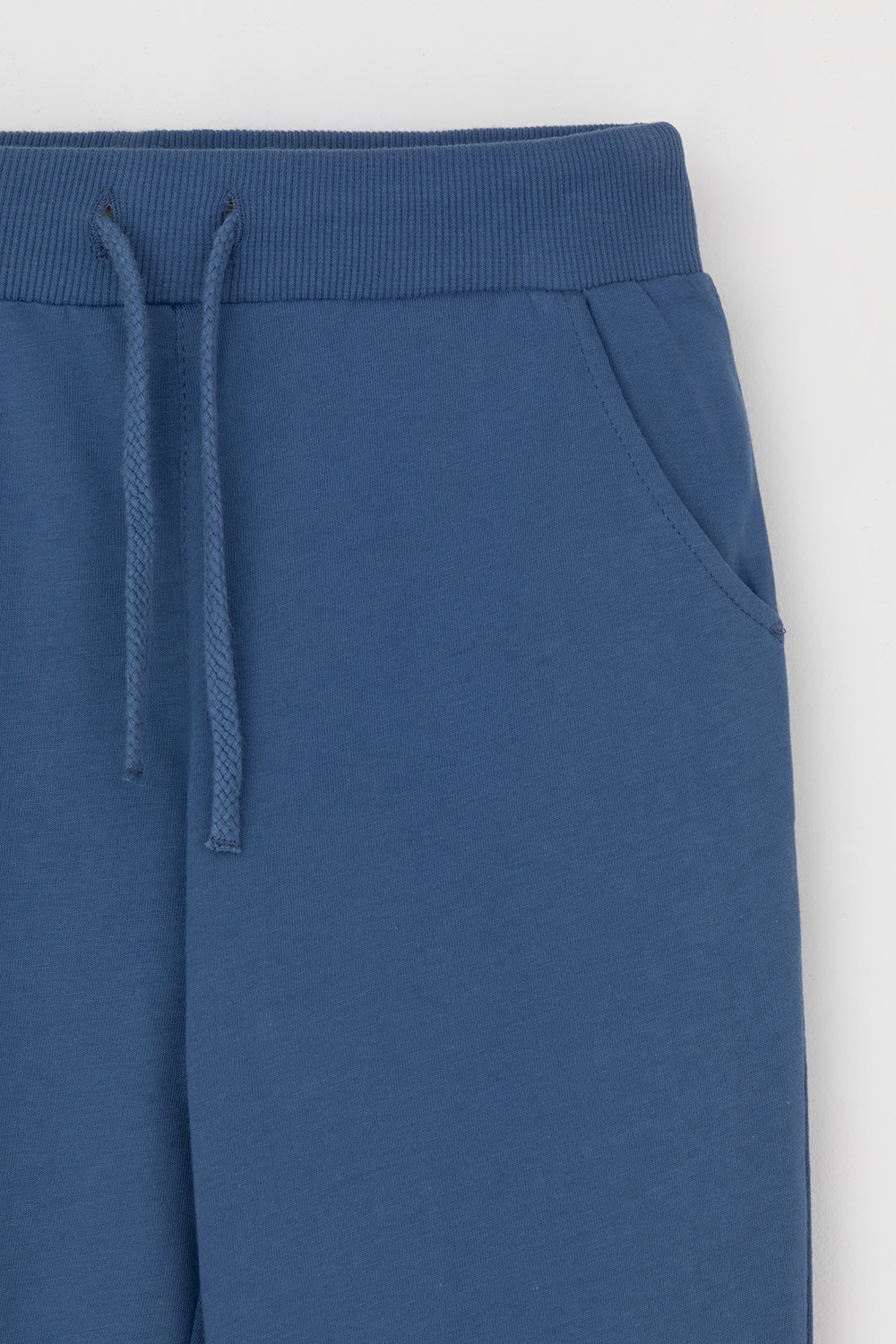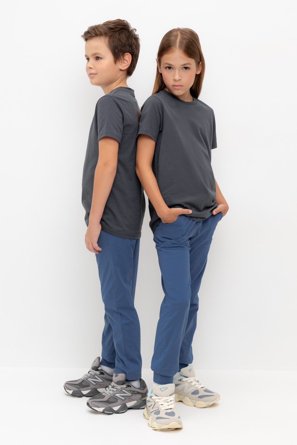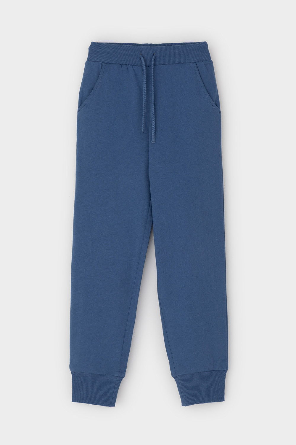 Трикотажные брюки для мальчика из высококачественного трикотажного полотна супрем. Эластичный пояс на резинке регулируется по ширине с помощью шнурка, по бокам два удобных кармана, внизу эластичные манжеты.