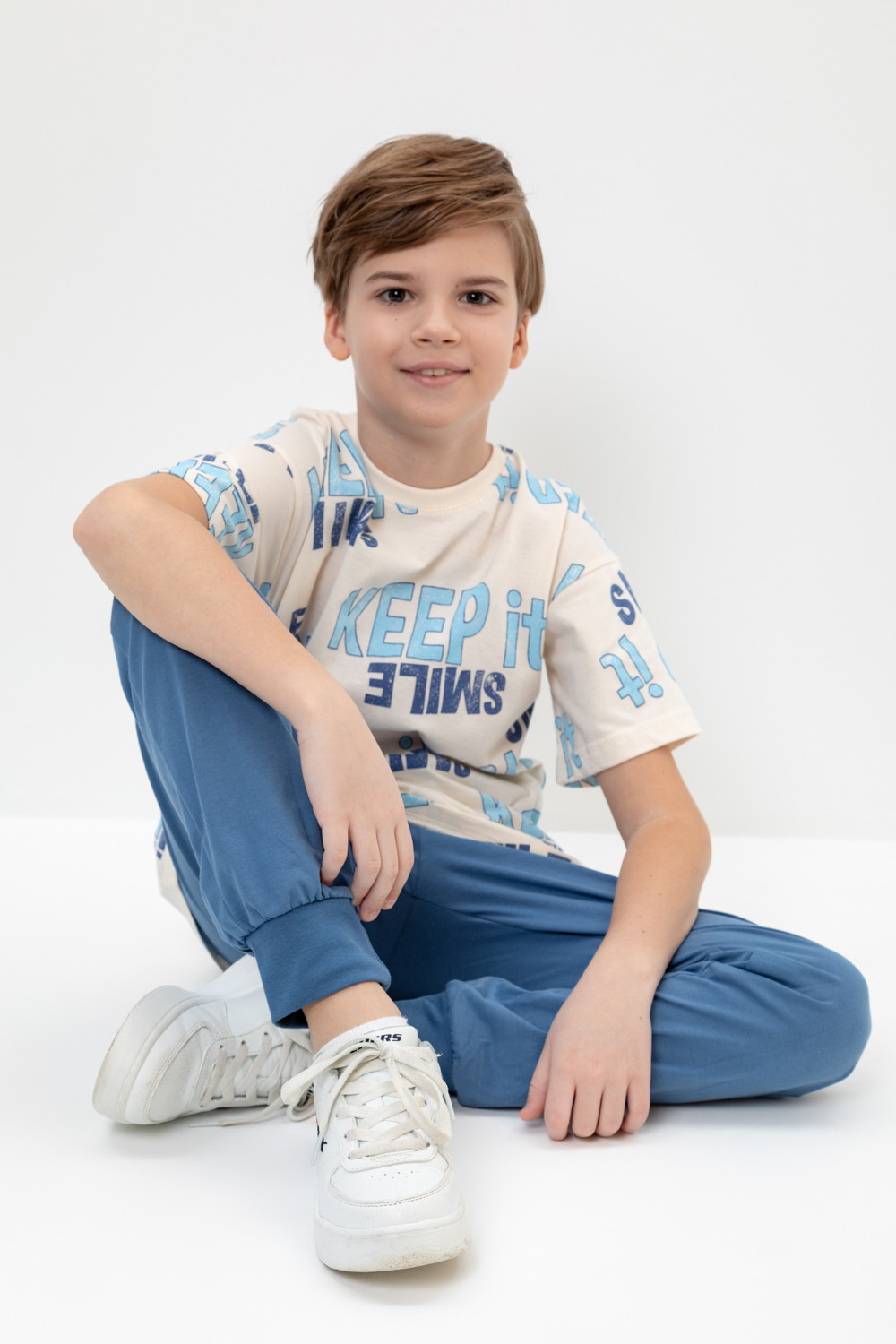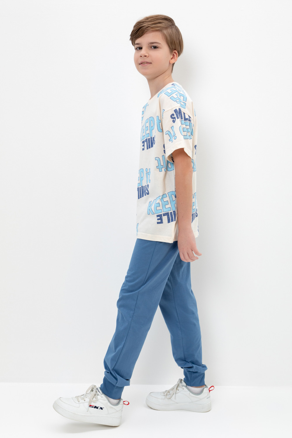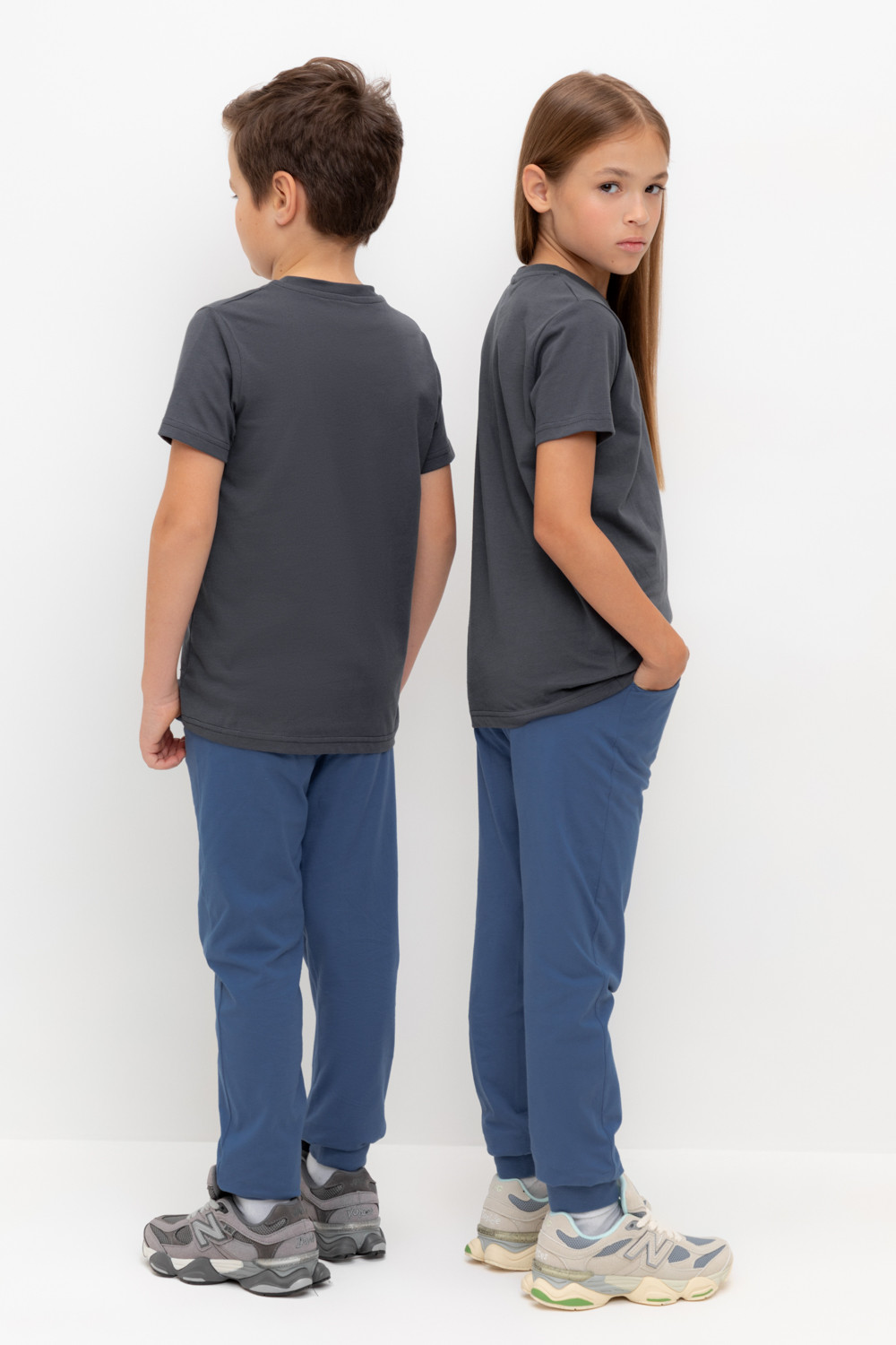 Трикотажные брюки для мальчика из высококачественного трикотажного полотна супрем. Эластичный пояс на резинке регулируется по ширине с помощью шнурка, по бокам два удобных кармана, внизу эластичные манжеты.