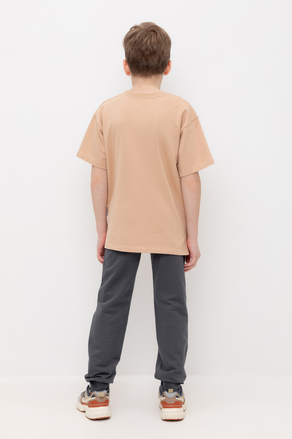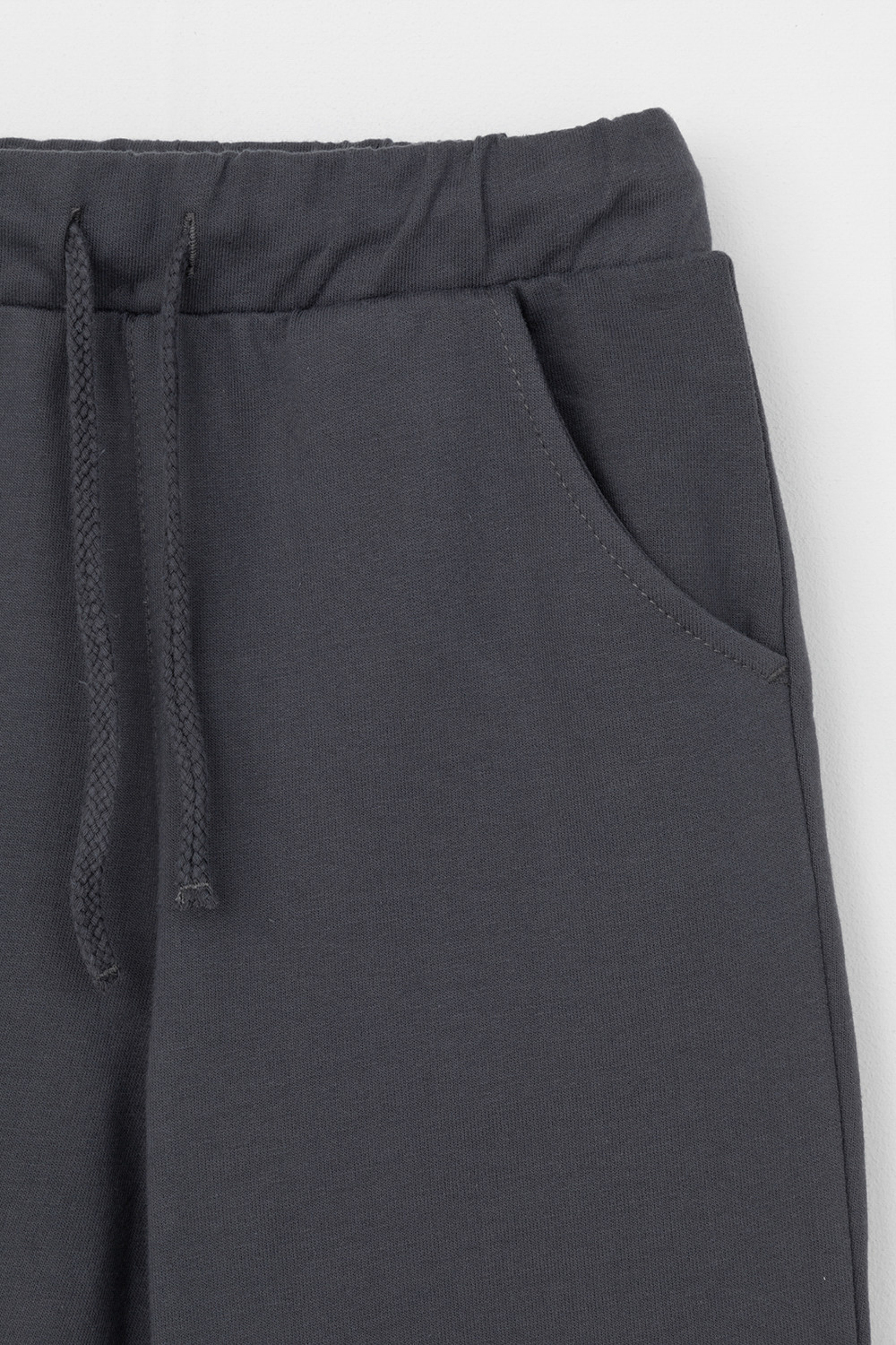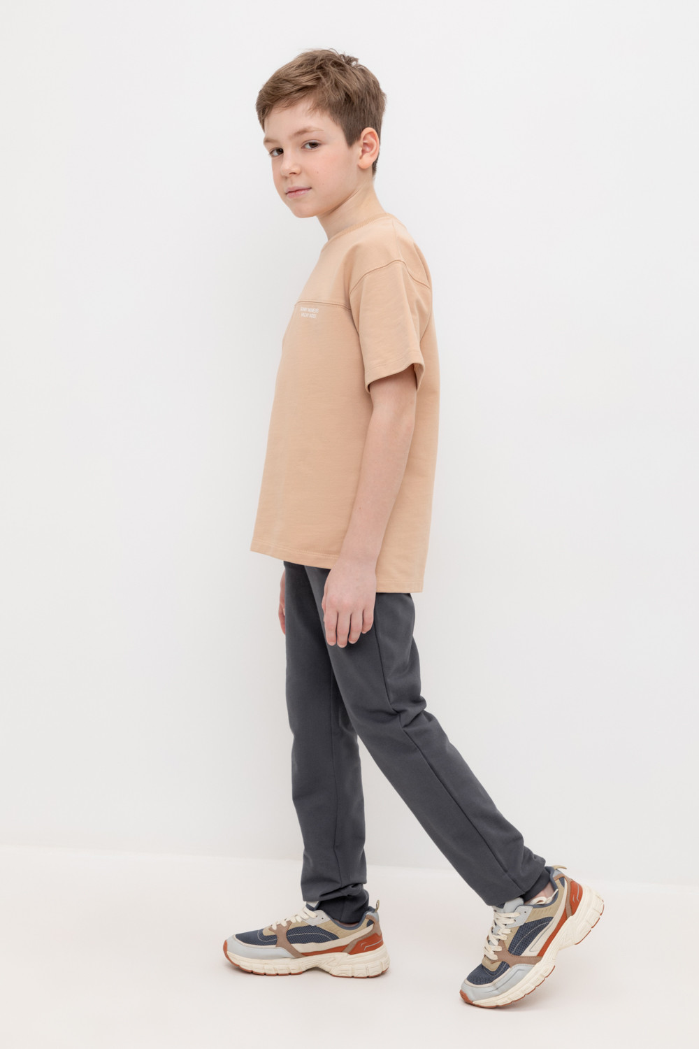 Трикотажные брюки для мальчика из петельчатого футера. Эластичный пояс на резинке регулируется по ширине с помощью шнурка, по бокам два удобных кармана, внизу эластичные манжеты.