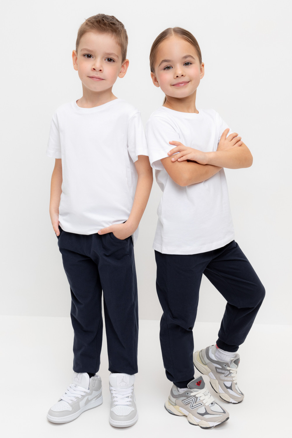 Трикотажные брюки для мальчика из высококачественного трикотажного полотна супрем. Эластичный пояс на резинке регулируется по ширине с помощью шнурка, по бокам два удобных кармана, внизу эластичные манжеты.