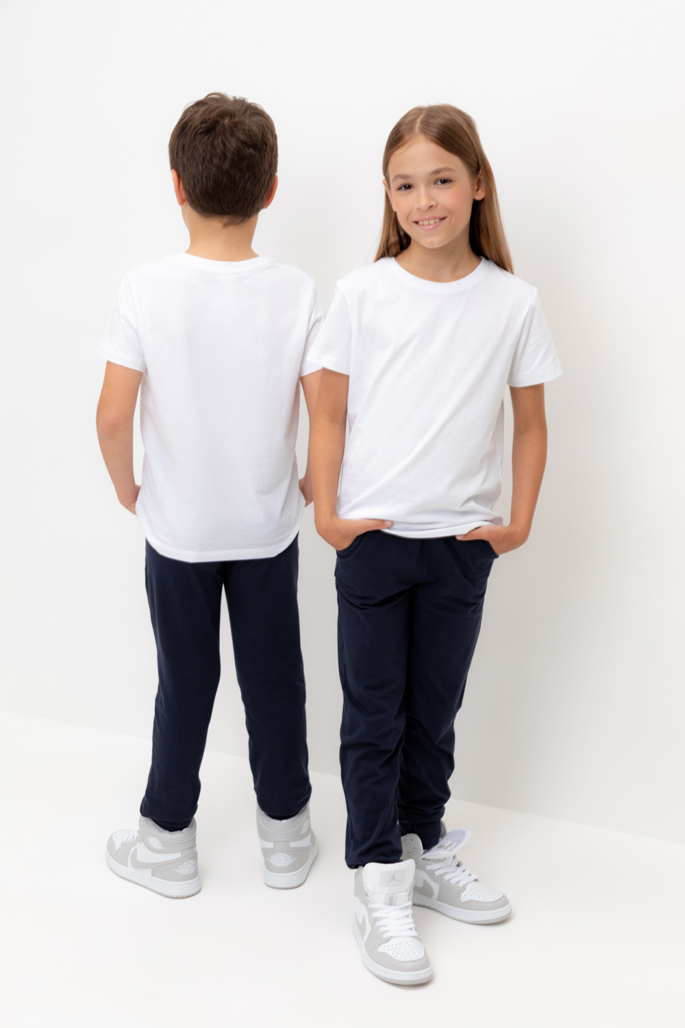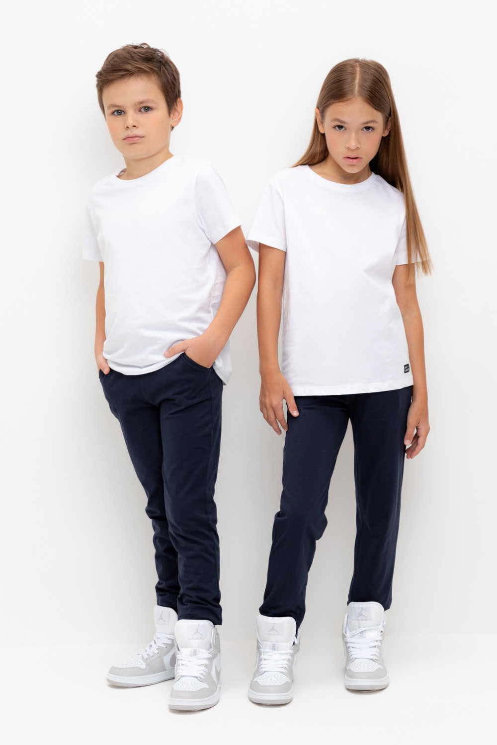 Трикотажные брюки для мальчика из высококачественного трикотажного полотна супрем. Эластичный пояс на резинке регулируется по ширине с помощью шнурка, по бокам два удобных кармана, внизу эластичные манжеты.