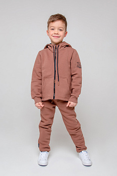 Однотонные брюки для мальчика из футера трехнитки с начесом. Эластичный пояс регулируется по ширине с помощью шнурка. У изделия эластичные манжеты и два кармана по бокам. Брюки сохраняют цвет и форму после многократных стирок.