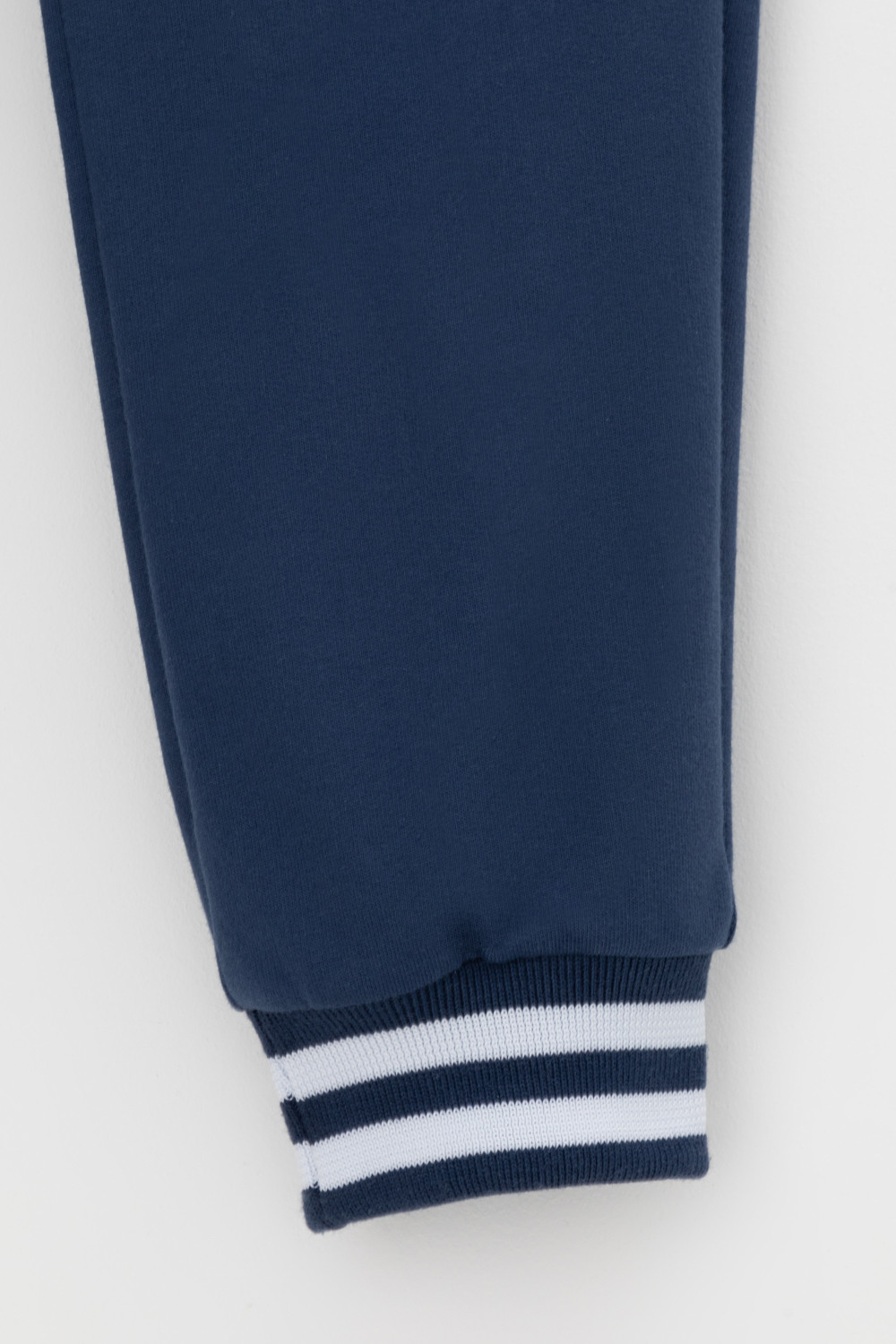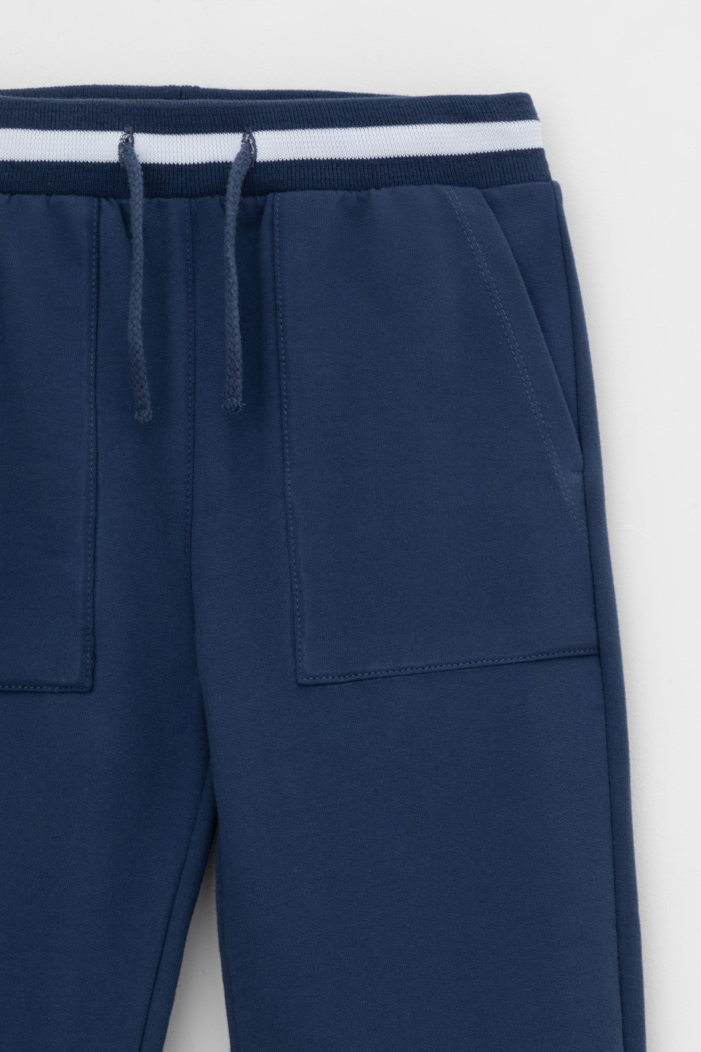 Брюки для мальчика из высококачественного трикотажного полотна. Пояс на резинке регулируется по ширине с помощью шнурка. По бокам два удобных кармана. Внизу эластичные манжеты.