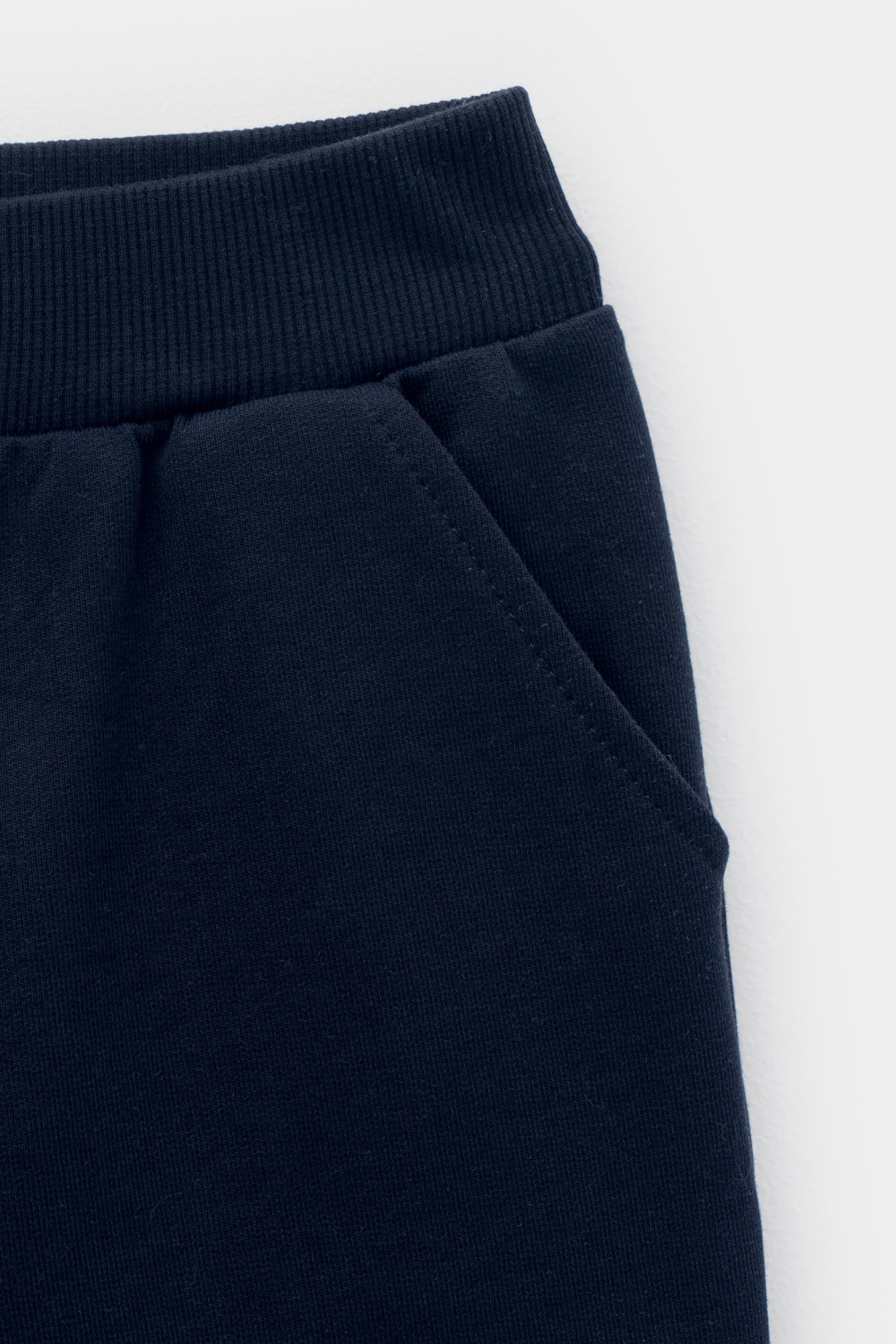 Трикотажные брюки из петельчатого футера. Эластичный пояс на резинке регулируется по ширине с помощью шнурка, по бокам два удобных кармана, внизу эластичные манжеты.