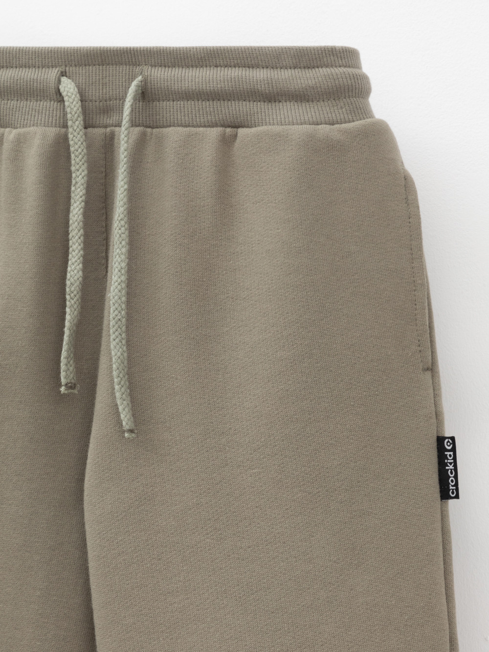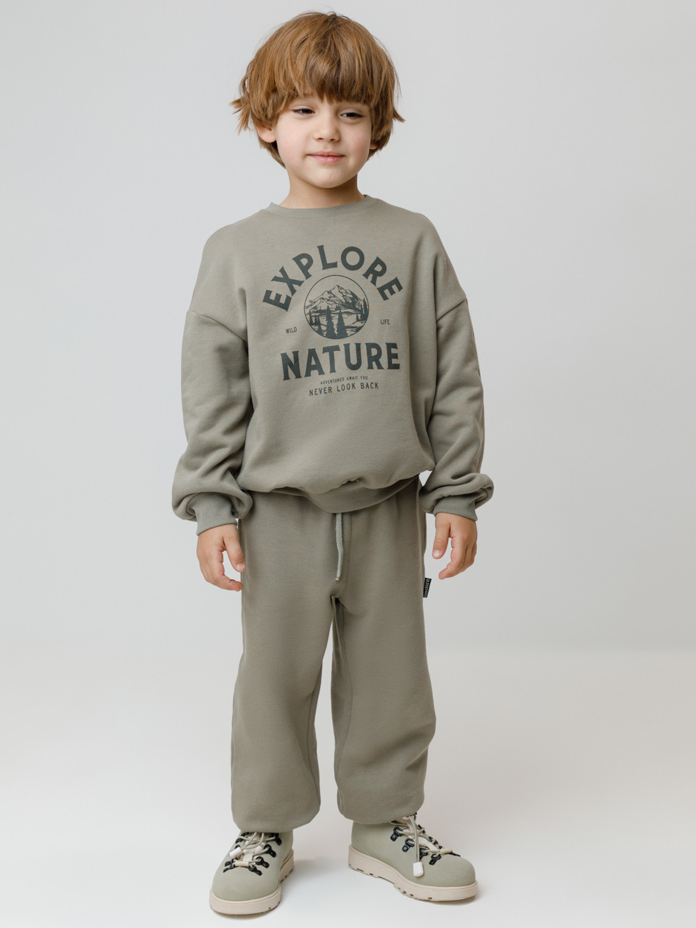 Брюки для мальчика из мягкого петельчатого футера трёхнитки. Модель с эластичным поясом на резинке и утягивающим шнурком для регулировки по талии. По бокам два кармана. Низ на манжетах. Изделие сохраняет цвет и форму после многократных стирок. Все трикотажные полотна производятся в соответствии с нормами швейцарского сертификата ЭкоТекс.