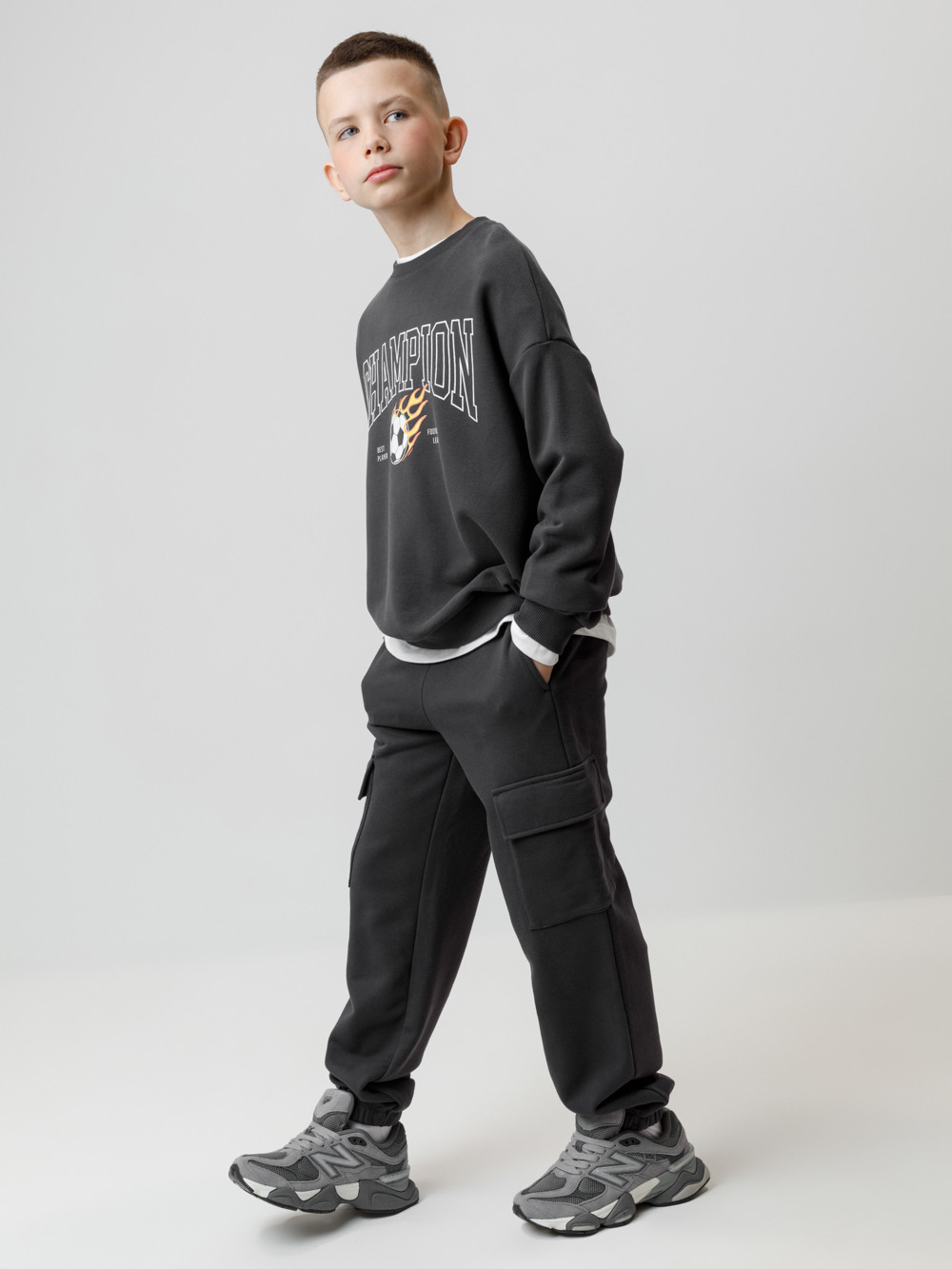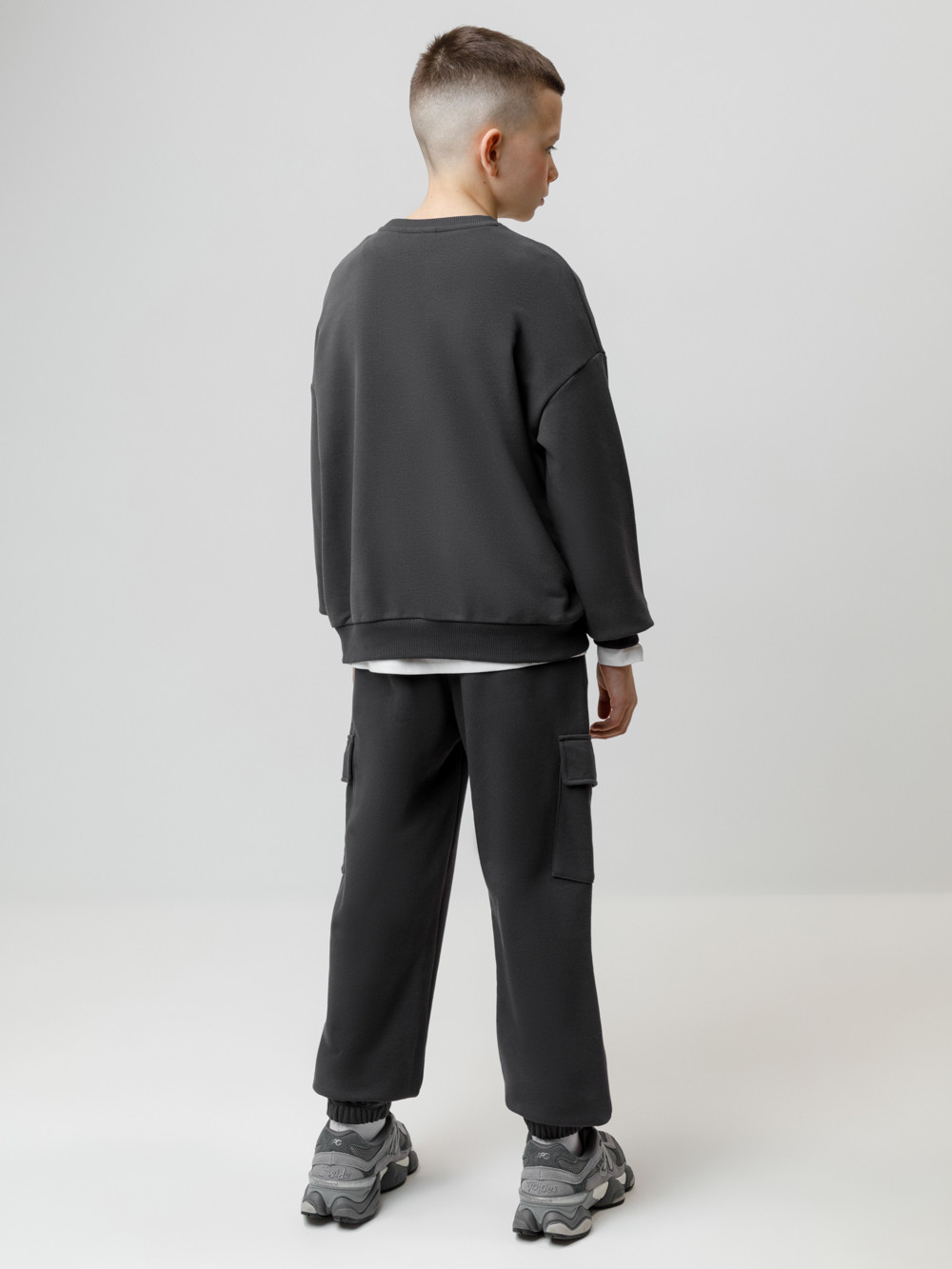 Брюки для мальчика из мягкого петельчатого футера трёхнитки. Модель с эластичным поясом на резинке и утягивающим шнурком для регулировки по талии. По бокам четыре удобных кармана. Низ на манжетах. Изделие сохраняет цвет и форму после многократных стирок. Все трикотажные полотна производятся в соответствии с нормами швейцарского сертификата ЭкоТекс.