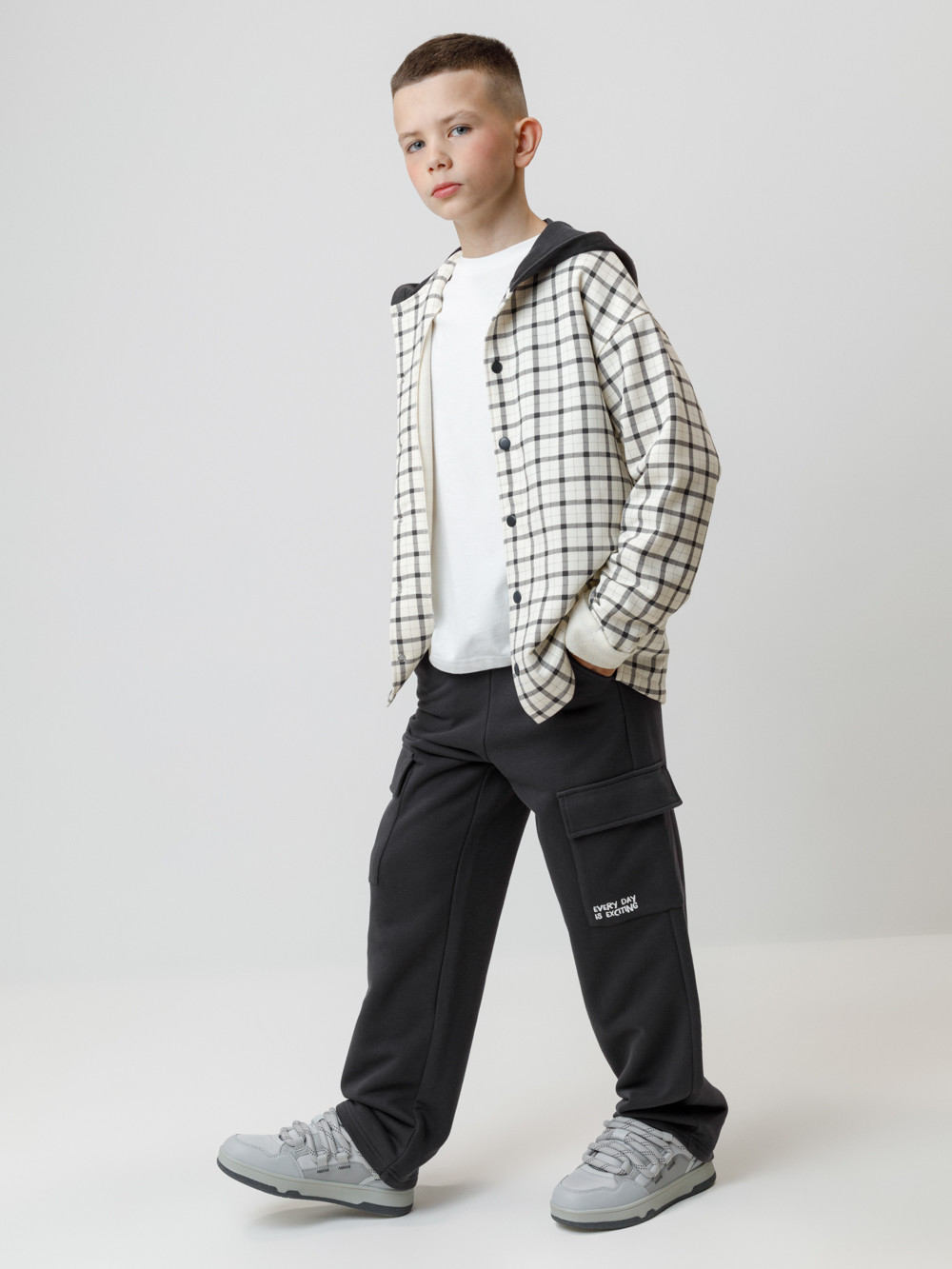 Брюки для мальчика из высококачественного петельчатого футера трёхнитки. В составе 80% натурального хлопка и 20% полиэстера, при этом полиэстер ввязан внутрь по особой технологии и не соприкасается с кожей. Модель с эластичным поясом на резинке регулируется по ширине с помощью шнурка. По бокам четыре удобных кармана. Оригинальный принт выполнен из стойких текстильных гипоаллергенных красителей. Изделие сохраняет цвет и форму после многократных стирок. Все трикотажные полотна производятся в соответствии с нормами швейцарского сертификата ЭкоТекс.