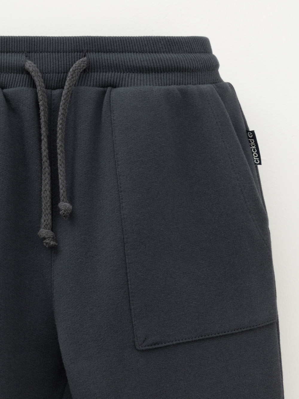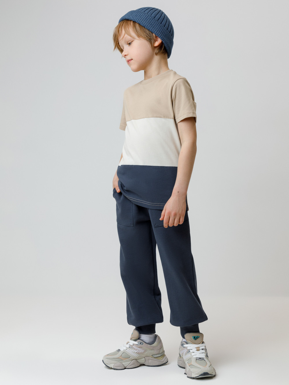 Брюки для мальчика из мягкого петельчатого футера трёхнитки. Модель с эластичным поясом на резинке и утягивающим шнурком для регулировки по талии. По бокам два накладных кармана. Низ на манжетах. Изделие сохраняет цвет и форму после многократных стирок. Все трикотажные полотна производятся в соответствии с нормами швейцарского сертификата ЭкоТекс.