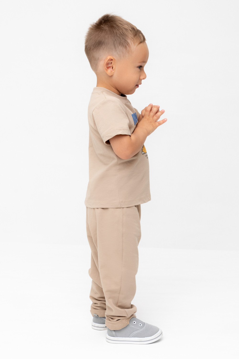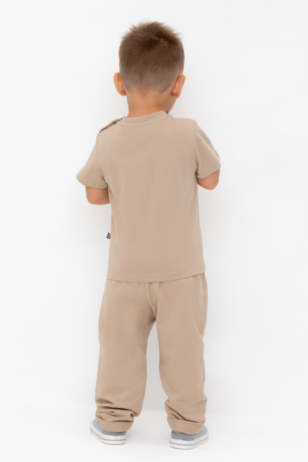 Брюки для мальчика из высококачественного трикотажного полотна. Пояс на резинке регулируется по ширине с помощью шнурка. Изделие сохраняет цвет и форму после многократных стирок.