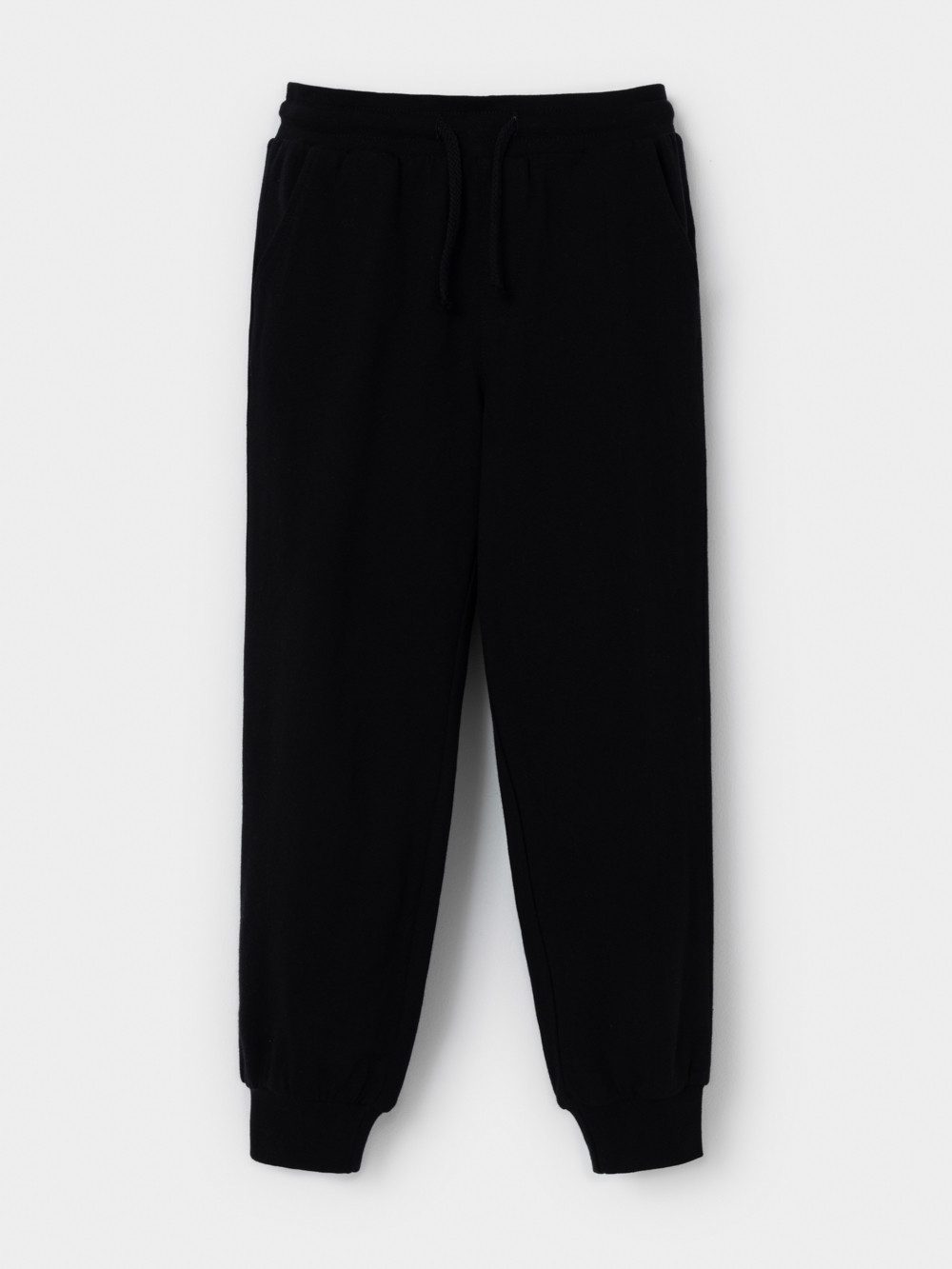 Лёгкие брюки для мальчика из гладкого трикотажа. Полотно супрем изготовлено из 100% натурального хлопка высокого качества. Брюки отлично дышат, а свободный крой не стесняет движения во время активных игр и прогулок. Пояс на резинке регулируется при помощи шнурка. Низ на манжетах. По бокам два кармана. Изделие сохраняет цвет и форму после многократных стирок. Все трикотажные полотна производятся в соответствии с нормами швейцарского сертификата ЭкоТекс.