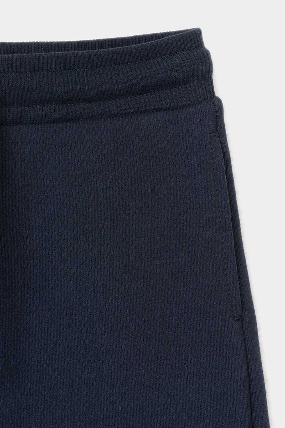 Трикотажные шорты для мальчика из петельчатого футера. Эластичный пояс на резинке регулируется по ширине с помощью шнурка, по бокам два удобных кармана.
