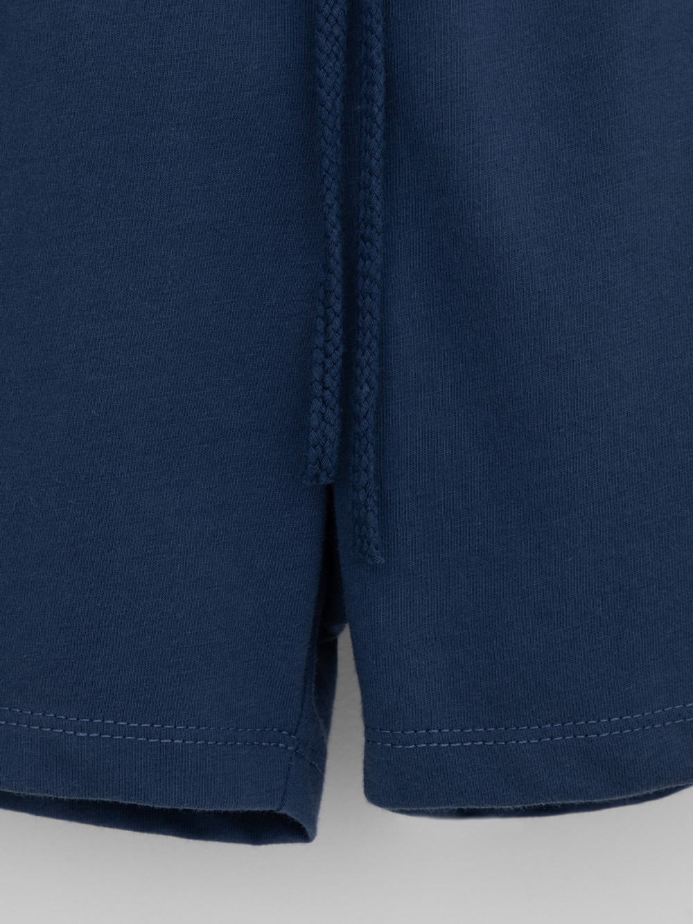 Легкие трикотажные шорты для мальчика из высококачественного хлопка. Эластичный пояс регулируется при помощи шнурка.