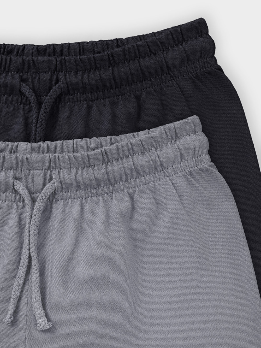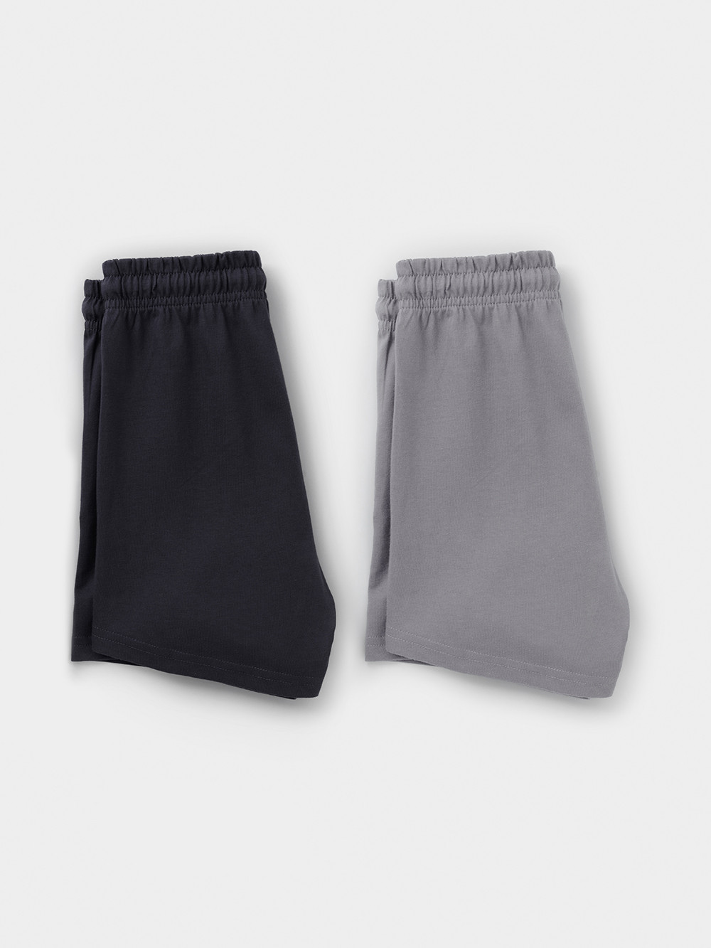 Трикотажные шорты для мальчика, комплект из 2 штук. Изготовлены из гладкого трикотажа супрем, который произведён из 100% натурального хлопка высокого качества.  Шорты отлично дышат, а свободный крой не стесняет движения, поэтому они комфортны для активных игр, отдыха и занятий спортом. Изделия сохраняют цвет и форму после многократных стирок. Все трикотажные полотна производятся в соответствии с нормами швейцарского сертификата ЭкоТекс.