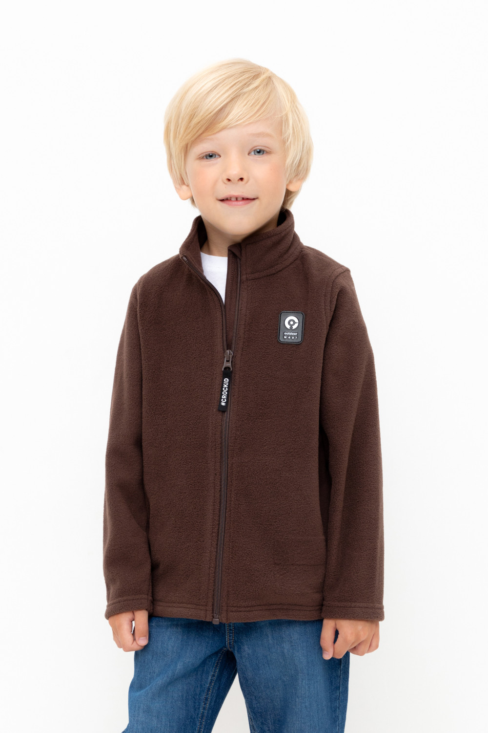 Флисовая куртка для мальчика. У изделия высокий воротник, предусмотрена защита шеи и подбородка, по бокам карманы. Куртка сохраняет цвет и форму после многократных стирок.
