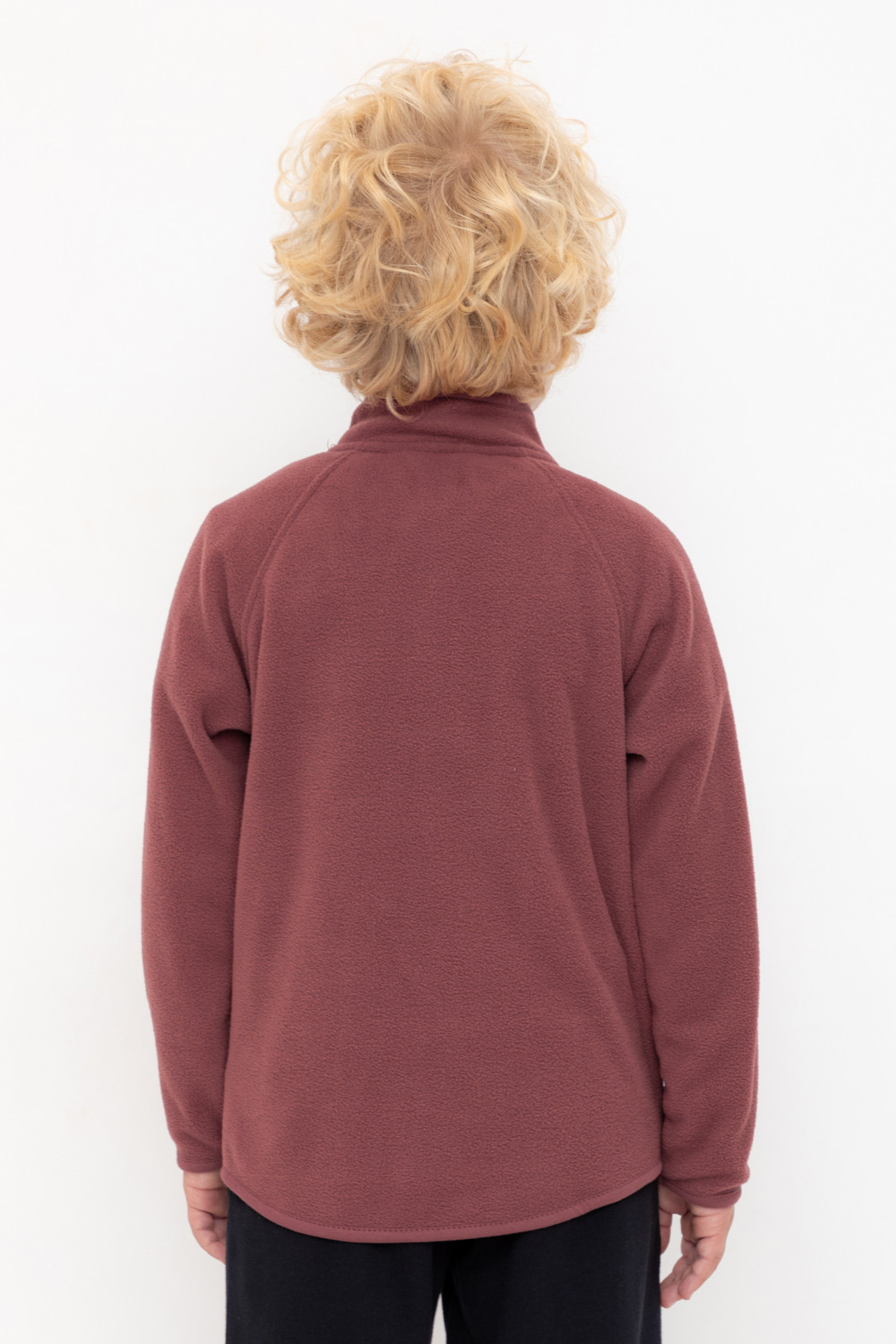 Флисовая куртка для мальчика. У изделия удлинённая спинка, высокий воротник, предусмотрена защита шеи и подбородка. Рукава-реглан и низ изделия обработаны эластичным кантом для лучшего прилегания к телу, по бокам два кармана. Куртка сохраняет цвет и форму после многократных стирок.
