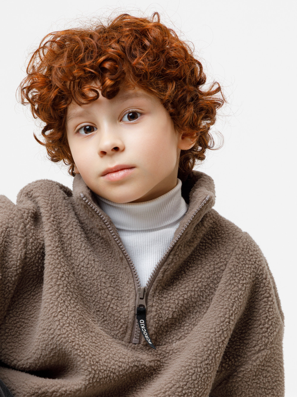 Детская толстовка из флиса. У изделия высокий воротник и застёжка спереди на короткую молнию. Рукава и низ изделия собраны на резинку. Толстовка сохраняет цвет и форму после многократных стирок.