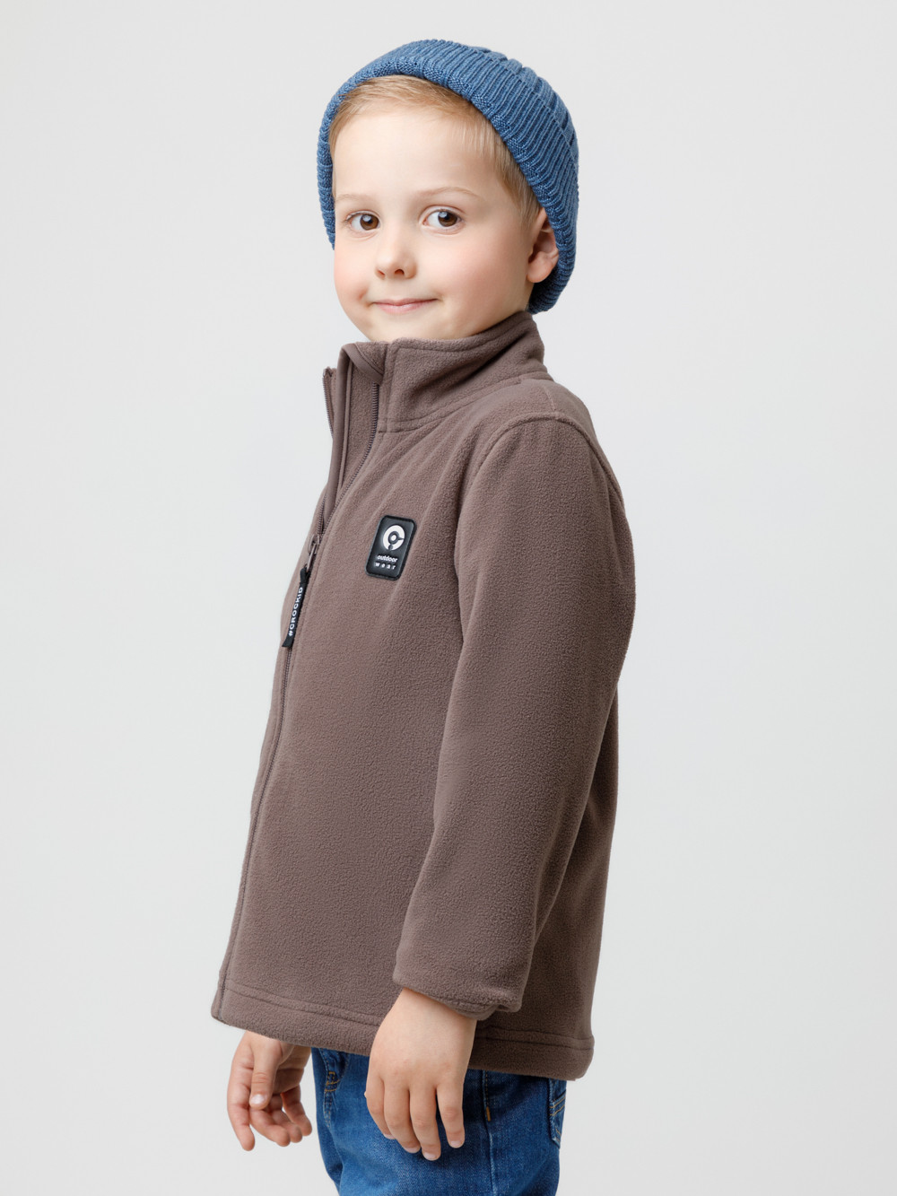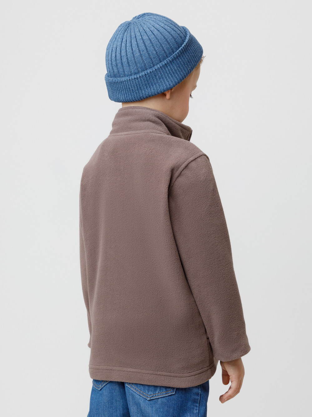 Флисовая куртка для мальчика. У изделия высокий воротник и застёжка на молнию с мягкой защитой шеи и подбородка. По бокам два кармана. Куртка сохраняет цвет и форму после многократных стирок.