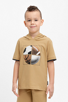 Футболка с капюшоном для мальчика из высококачественного трикотажного полотна. Оригинальный принт выполнен из стойких текстильных красителей.