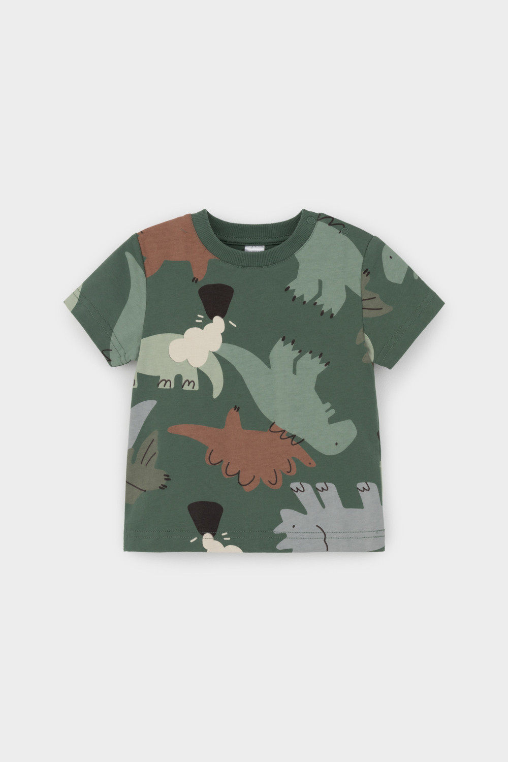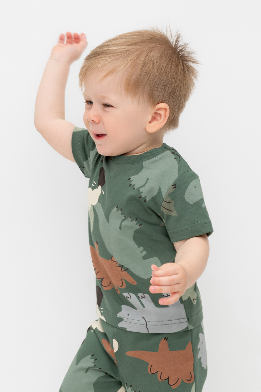 Футболка для мальчика из высококачественного трикотажного полотна. Оригинальная набивка выполнена из стойких текстильных красителей. Для удобства на плече застежка на кнопки
