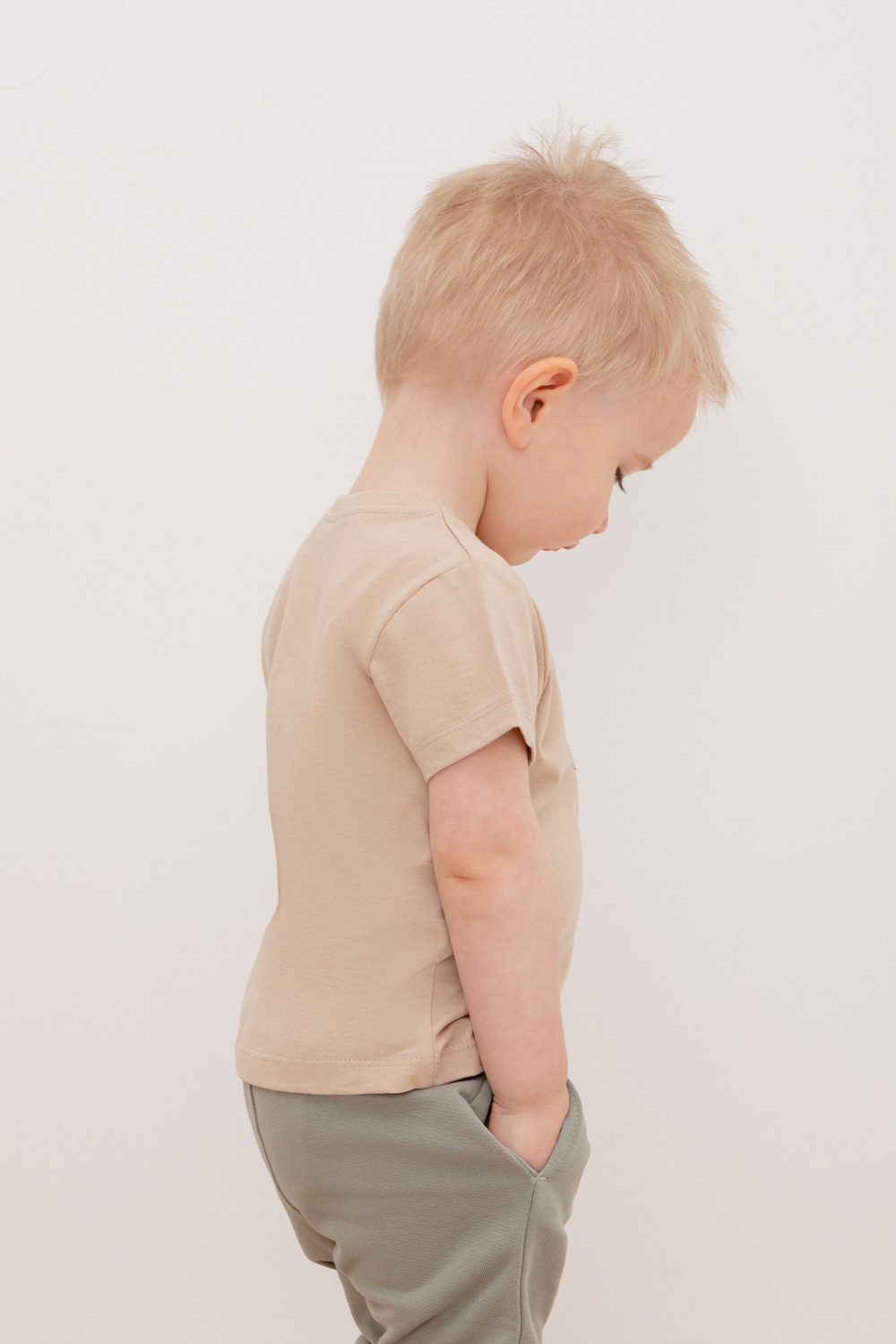 Футболка для мальчика из высококачественного трикотажного полотна. Оригинальный принт выполнен из стойких текстильных красителей. Для удобства на плече застежка на кнопки.