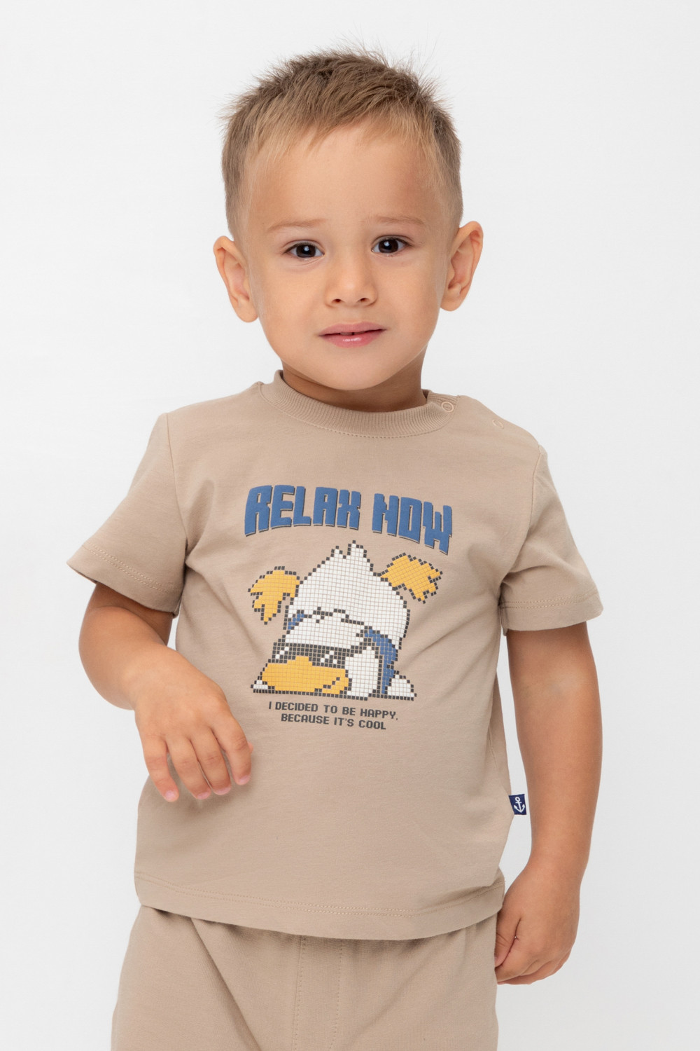 Футболка для мальчика из высококачественного трикотажного полотна. Оригинальный принт выполнен из стойких текстильных гипоаллергенных красителей. Для удобства на плече застежка на кнопки.