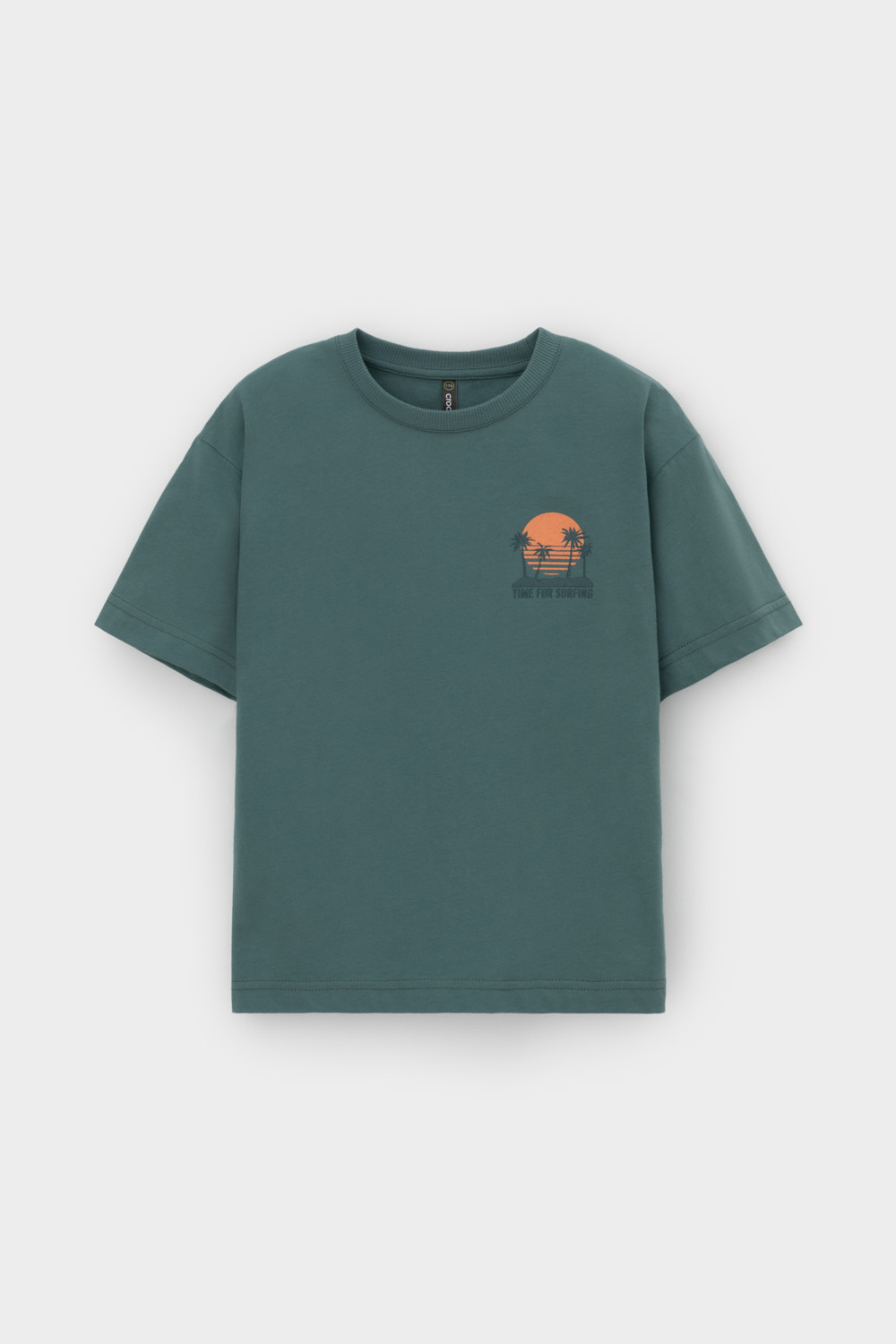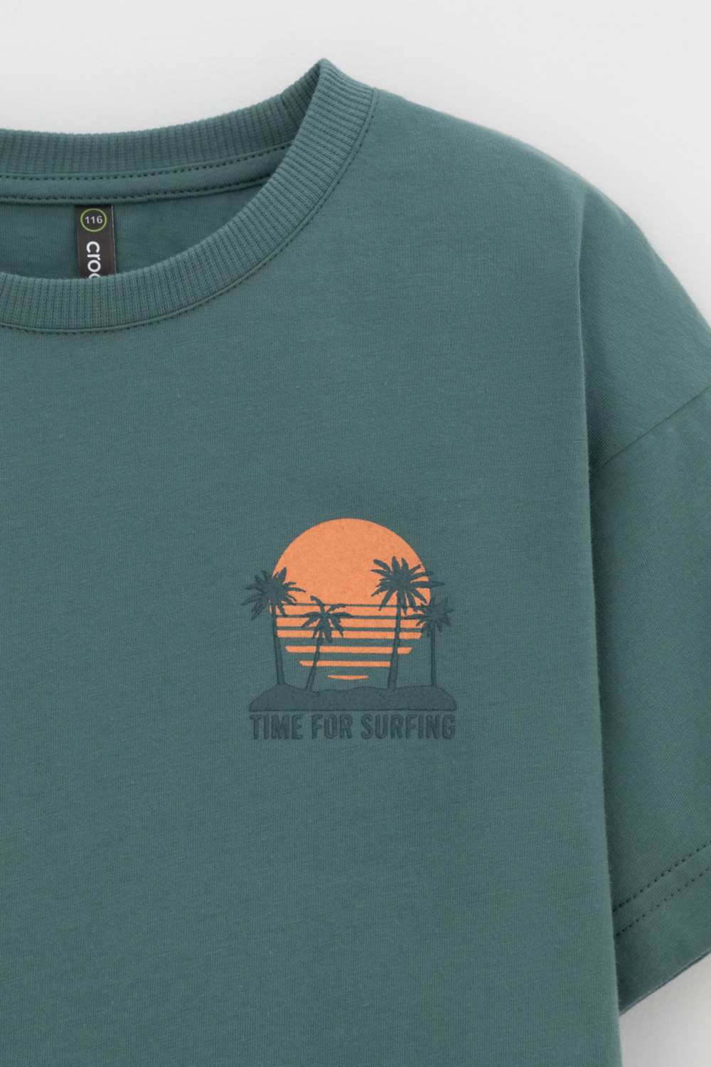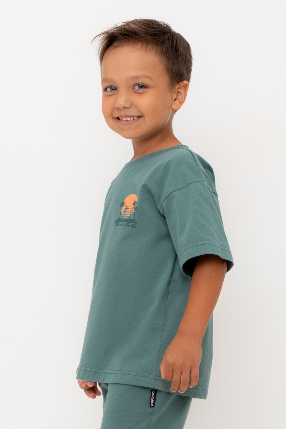 Футболка для мальчика из высококачественного трикотажного полотна. Оригинальный принт выполнен из стойких текстильных гипоаллергенных красителей. Для удобства в размерах 92 и 98 на спинке есть застежка на кнопки.
