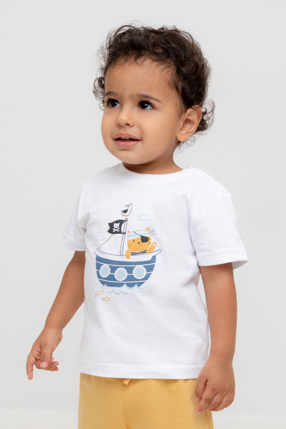 Футболка для мальчика из высококачественного трикотажного полотна. Оригинальный принт выполнен из стойких текстильных гипоаллергенных красителей. Для удобства на плече застежка на кнопки.