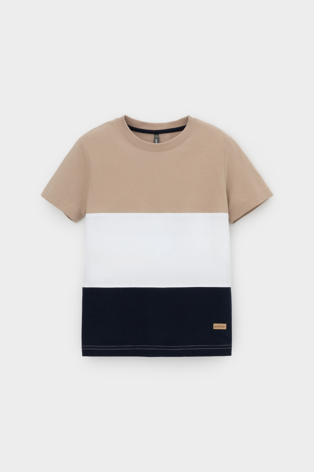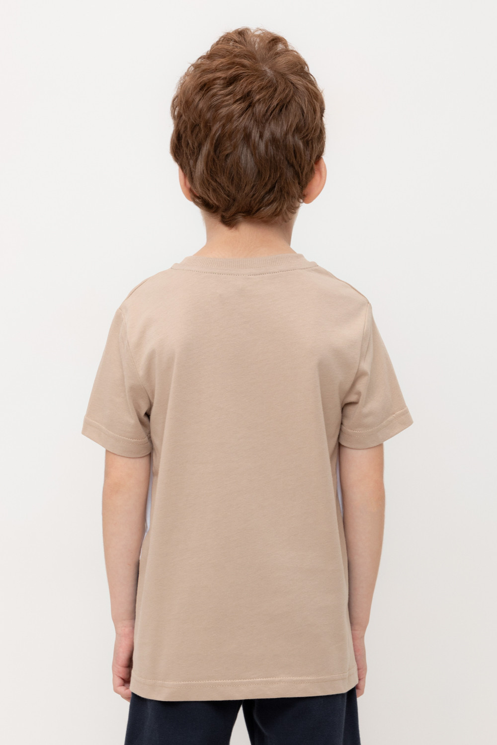 Футболка для мальчика из высококачественного трикотажного полотна. Спинка однотонная.  Для удобства в 92 и 98 размерах на плече застежка на кнопки.