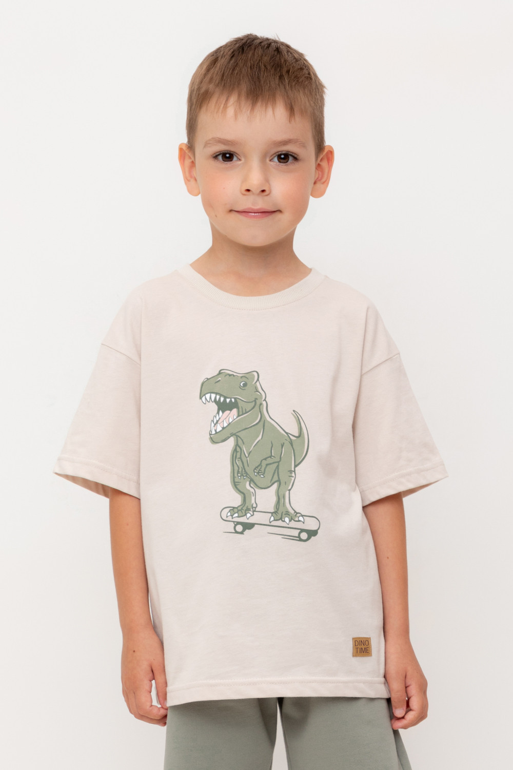 Футболка для мальчика из высококачественного трикотажного полотна. Оригинальный принт выполнен из стойких текстильных гипоаллергенных красителей. Для удобства в размерах 92 и 98 на спинке есть застежка на кнопки.