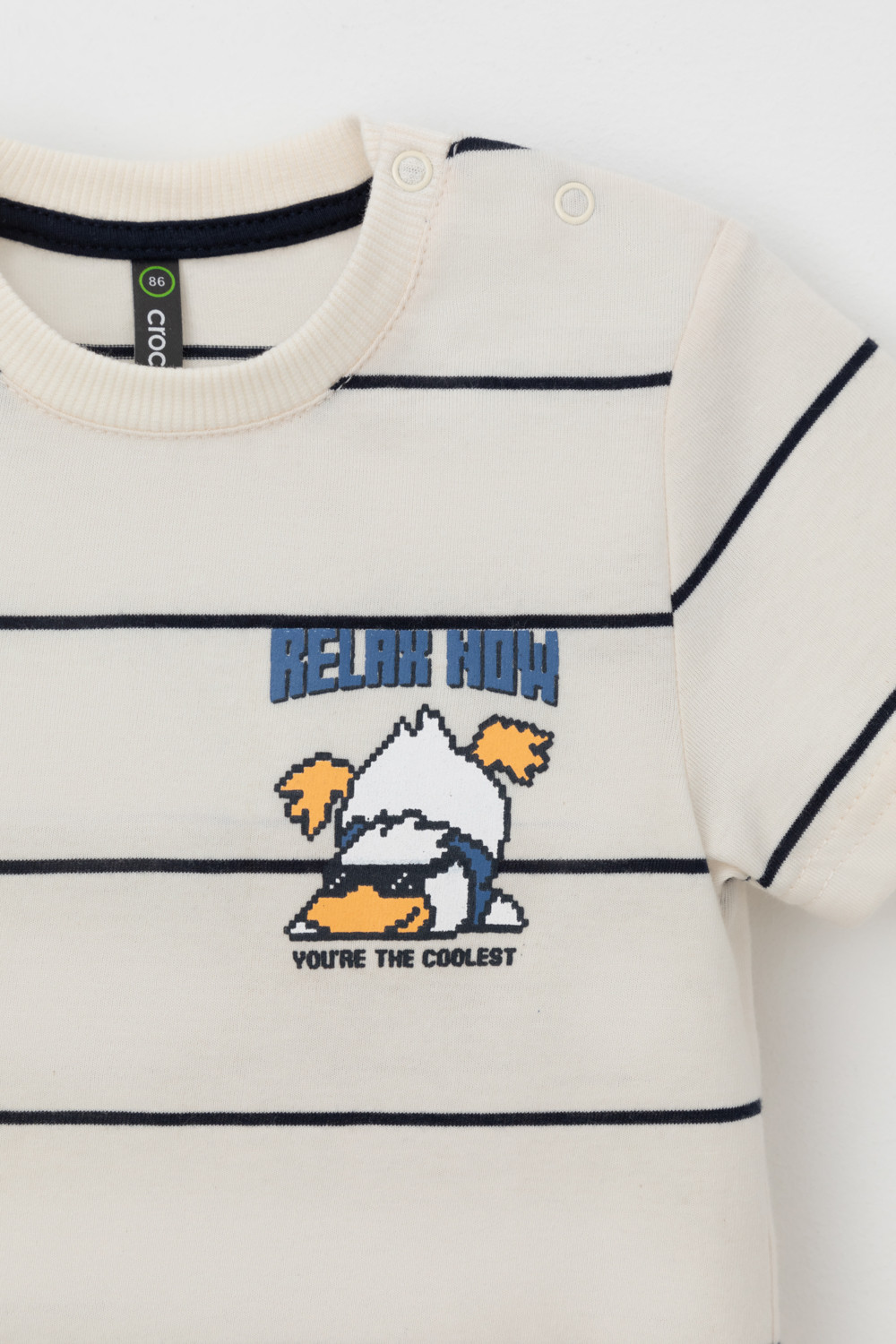 Футболка для мальчика из высококачественного трикотажного полотна. Оригинальная набивка и принт выполнены из стойких текстильных гипоаллергенных красителей. Для удобства на плече есть застежка на кнопки.