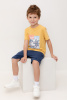 Футболка для мальчика из высококачественного трикотажного полотна. Оригинальный принт выполнен из стойких текстильных гипоаллергенных красителей. Для удобства в размерах 92 и 98 на плече есть застежка на кнопки.