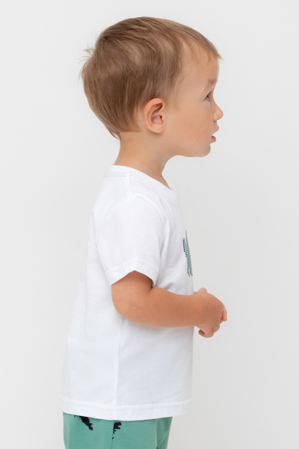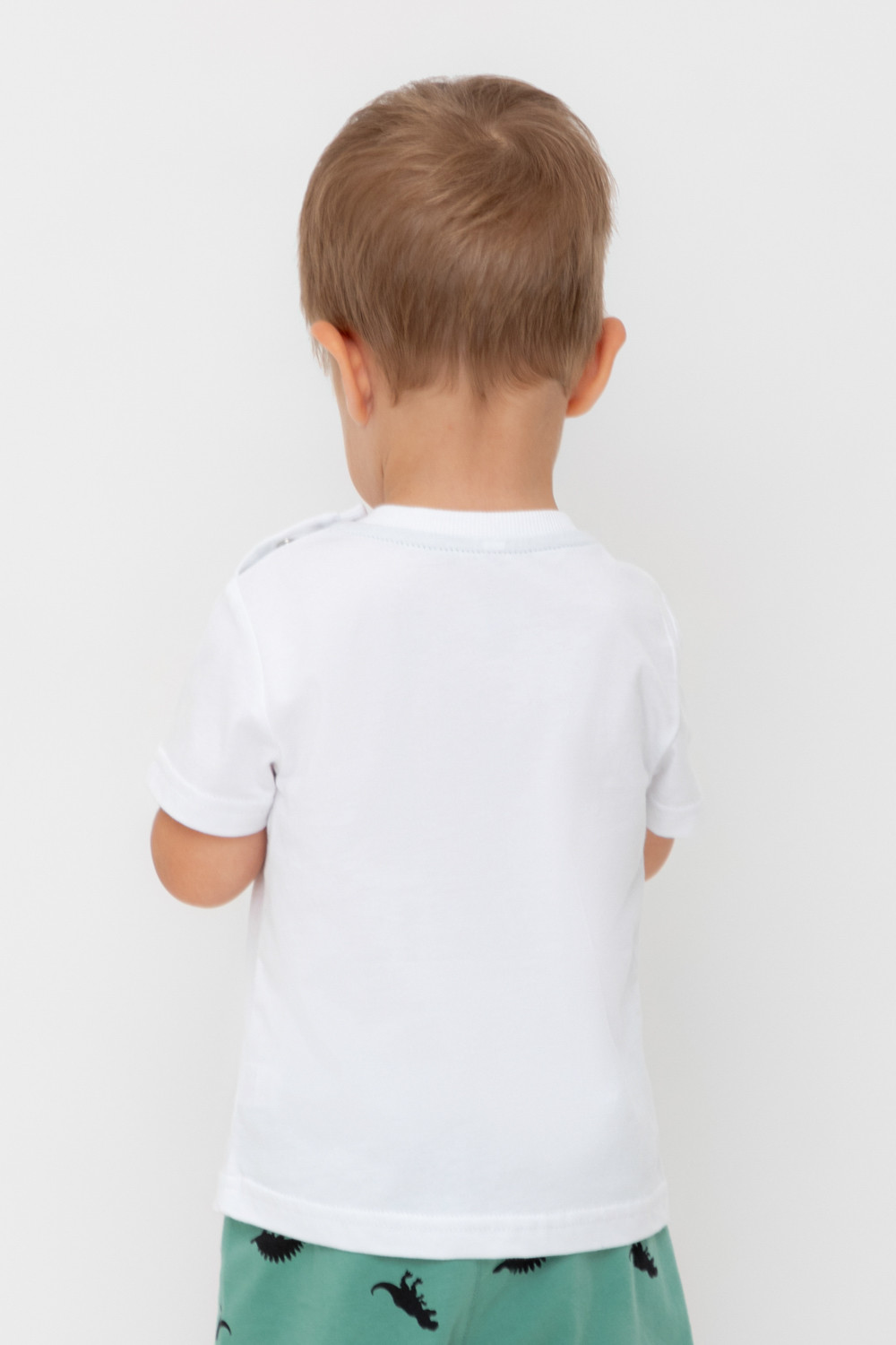 Футболка для мальчика из высококачественного трикотажного полотна. Оригинальный принт выполнен из стойких текстильных гипоаллергенных красителей. Для удобства на плече застежка на кнопки.
