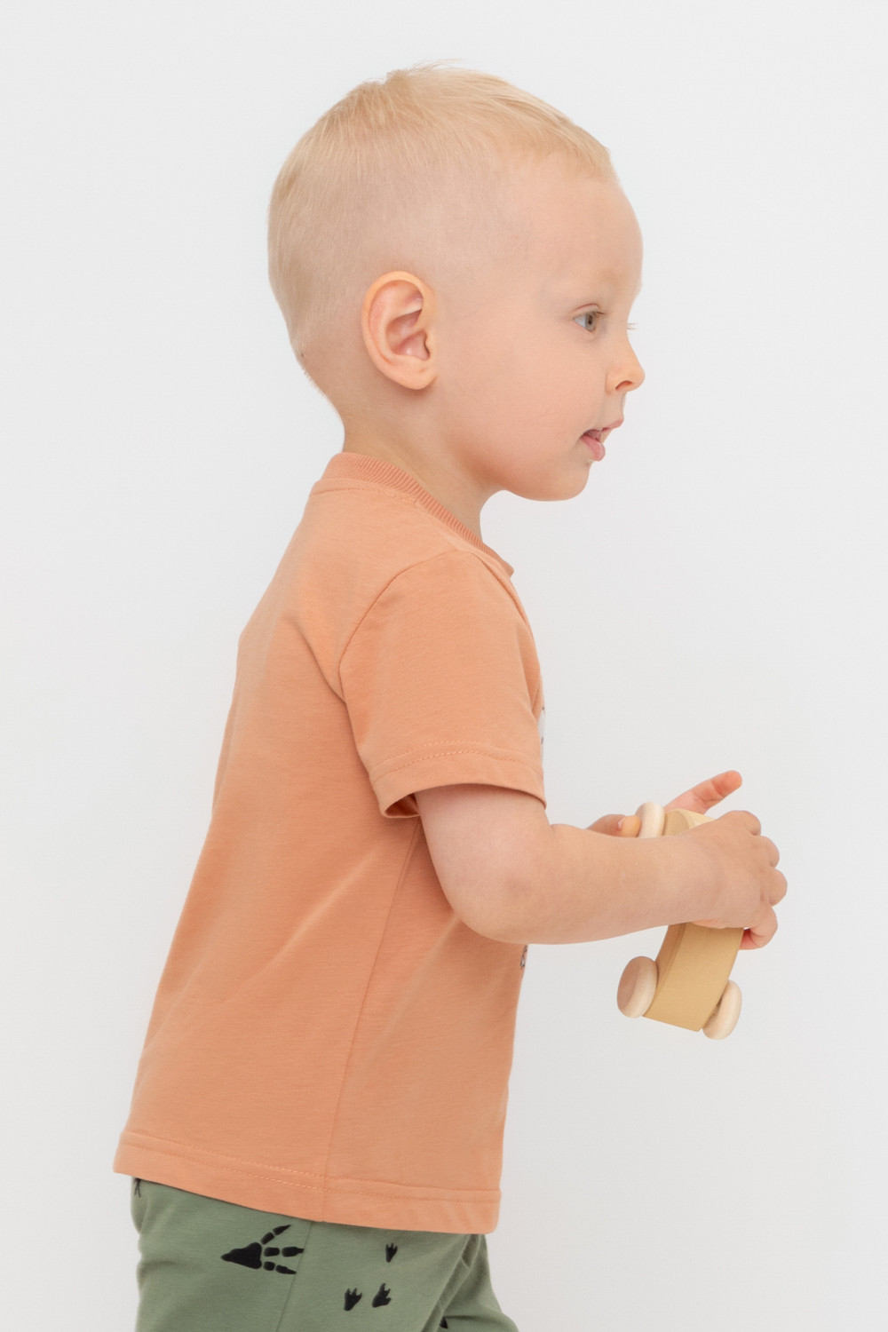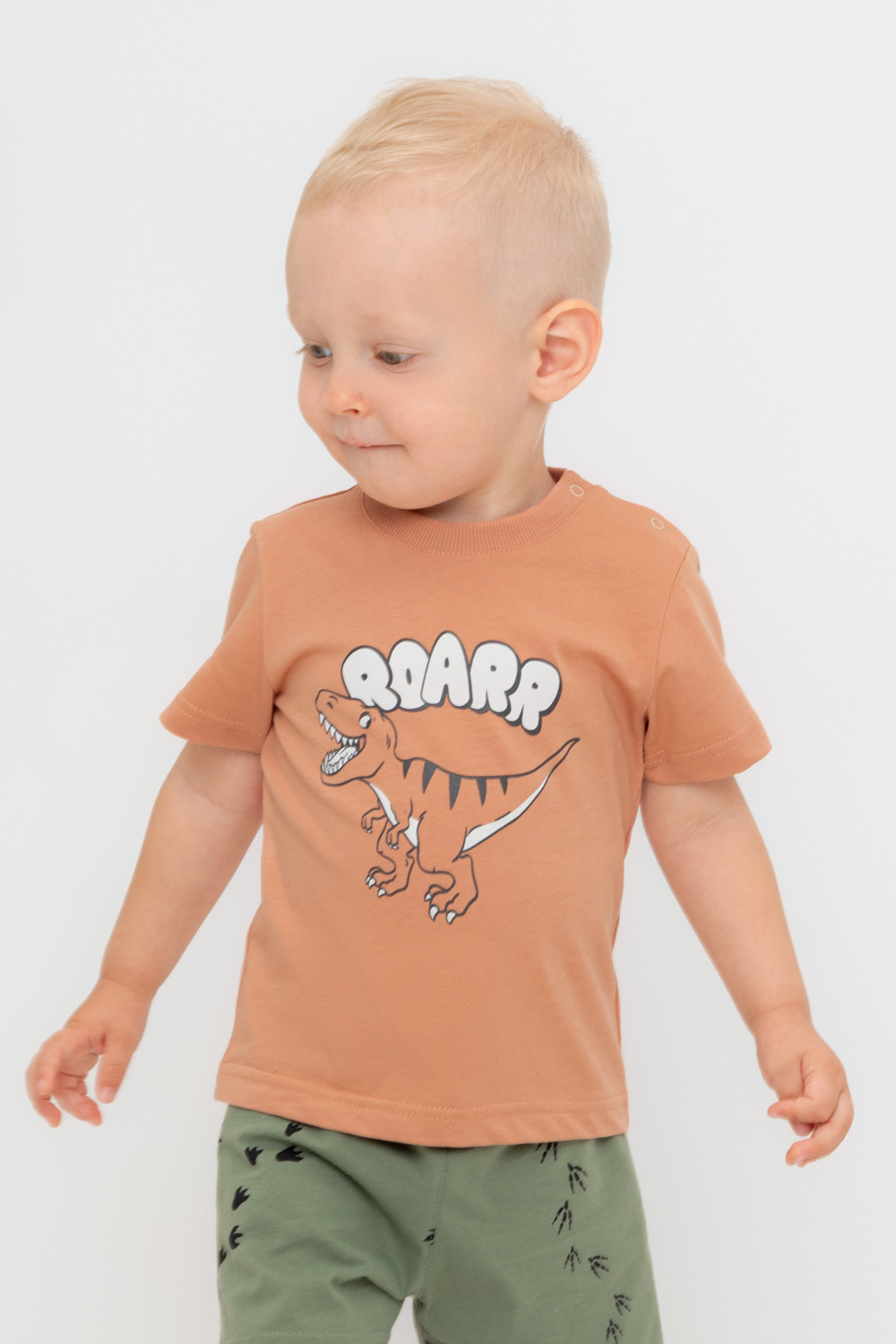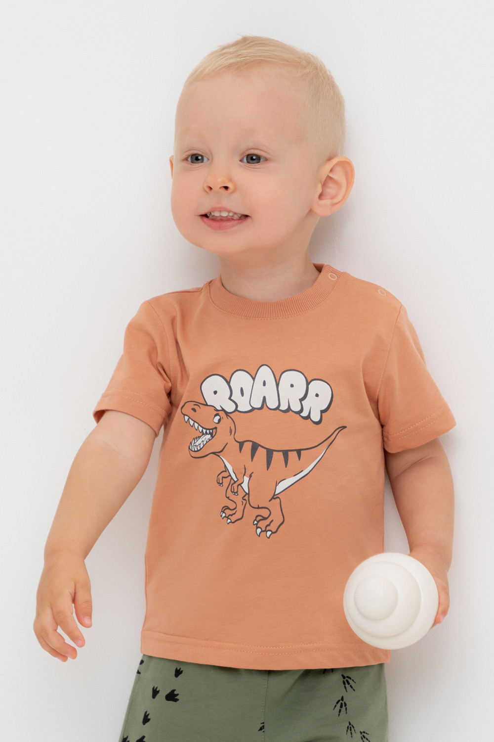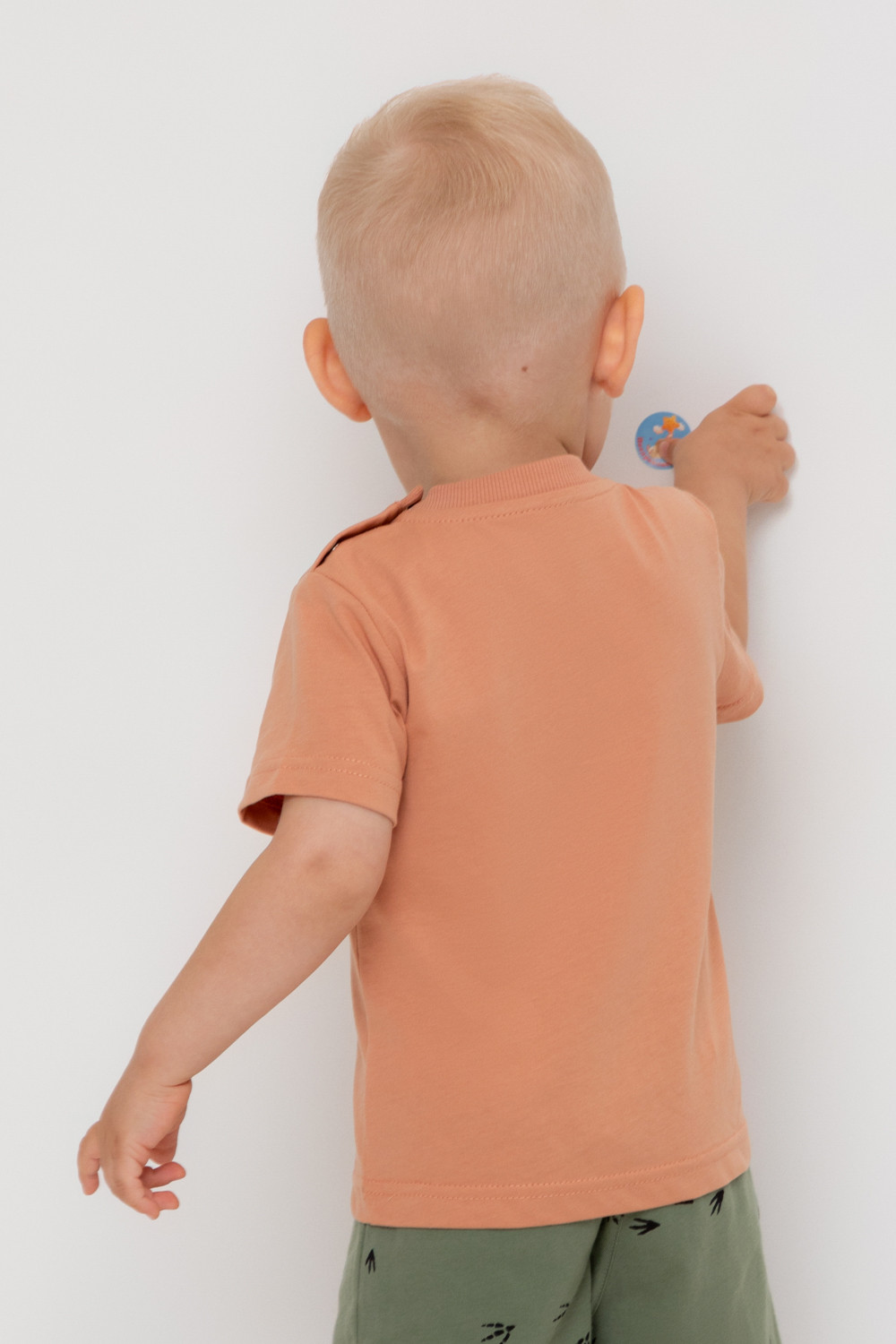 Футболка для мальчика из высококачественного трикотажного полотна. Оригинальный принт выполнен из стойких текстильных гипоаллергенных красителей. Для удобства на плече застежка на кнопки.