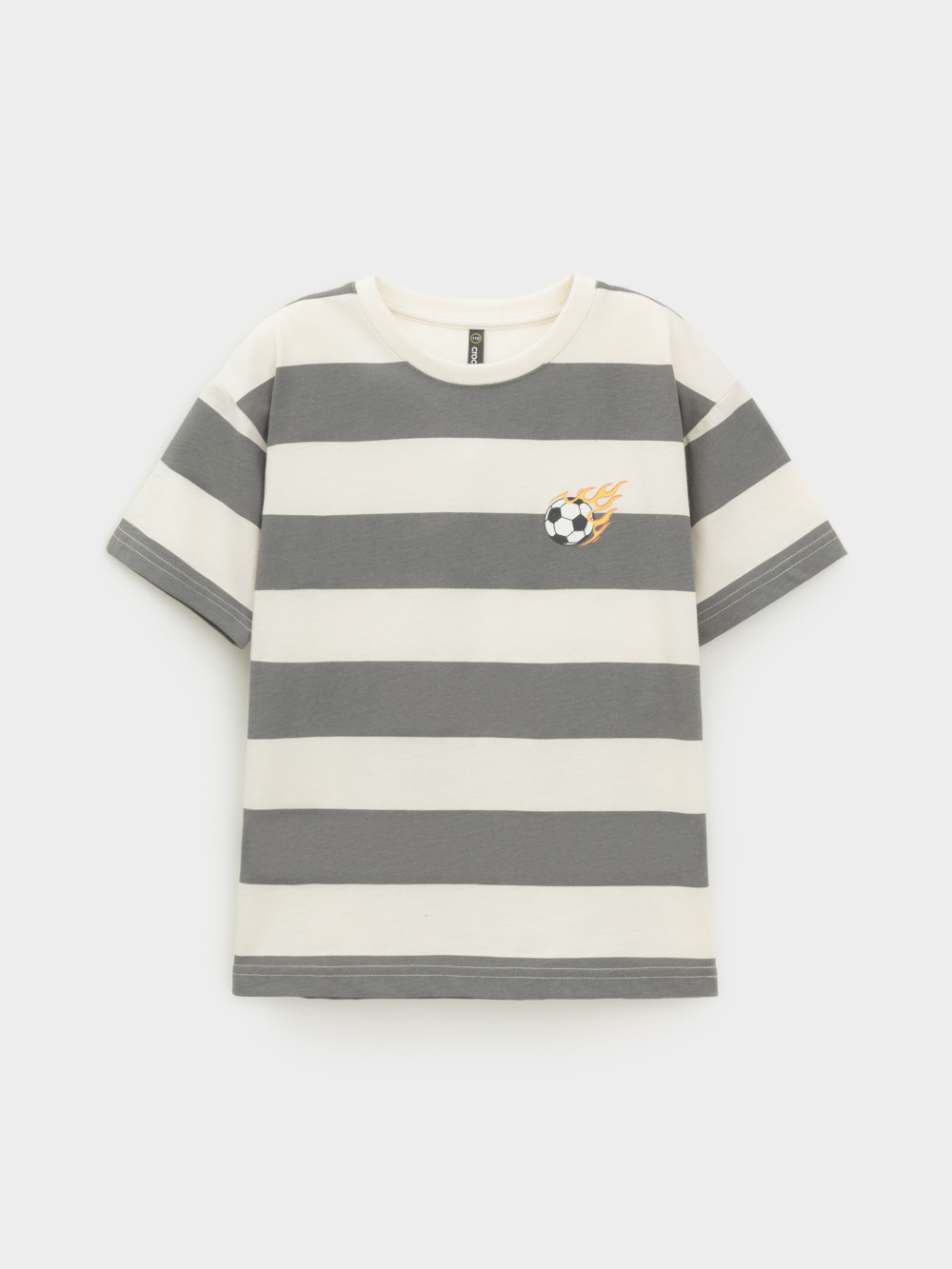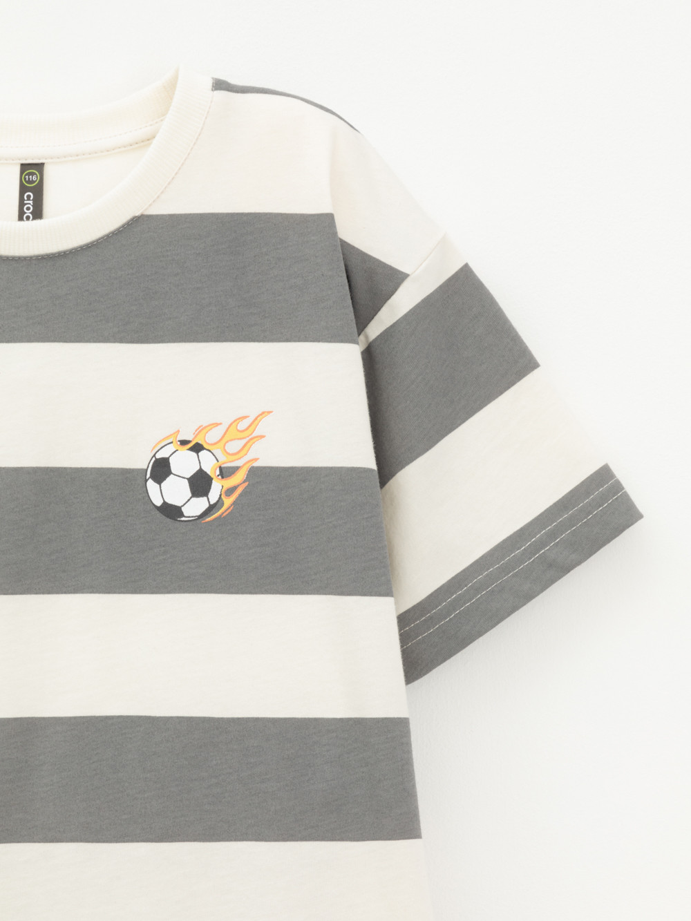 Футболка для мальчика из гладкого трикотажа, произведённого из высококачественного натурального хлопка. Для удобства одевания имеется застёжка на кнопки в размерах 92 и 98. Оригинальный принт выполнен из стойких текстильных гипоаллергенных красителей. Изделие сохраняет цвет и форму после многократных стирок. Все трикотажные полотна производятся в соответствии с нормами швейцарского сертификата ЭкоТекс.