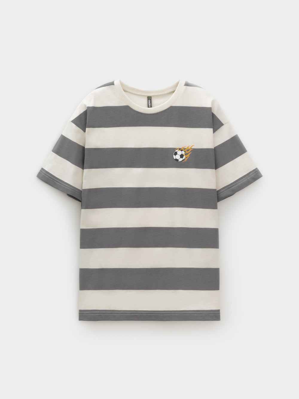 Футболка для мальчика из гладкого трикотажа, произведённого из высококачественного натурального хлопка. Оригинальный принт выполнен из стойких текстильных гипоаллергенных красителей. Изделие сохраняет цвет и форму после многократных стирок. Все трикотажные полотна производятся в соответствии с нормами швейцарского сертификата ЭкоТекс.