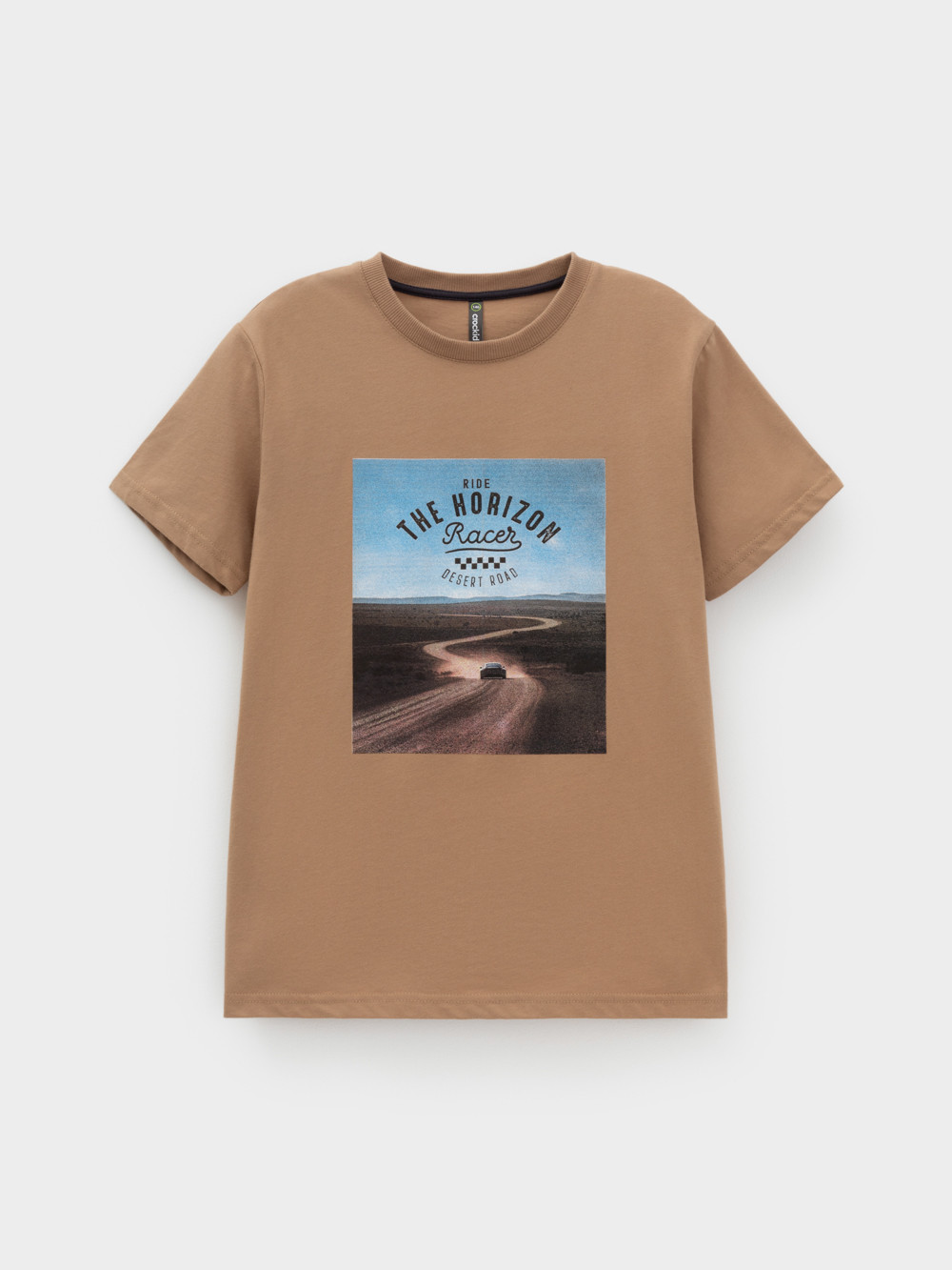 Футболка для мальчика из гладкого трикотажа, произведённого из высококачественного натурального хлопка. Оригинальный принт выполнен из стойких текстильных гипоаллергенных красителей. Изделие сохраняет цвет и форму после многократных стирок. Все трикотажные полотна производятся в соответствии с нормами швейцарского сертификата ЭкоТекс.