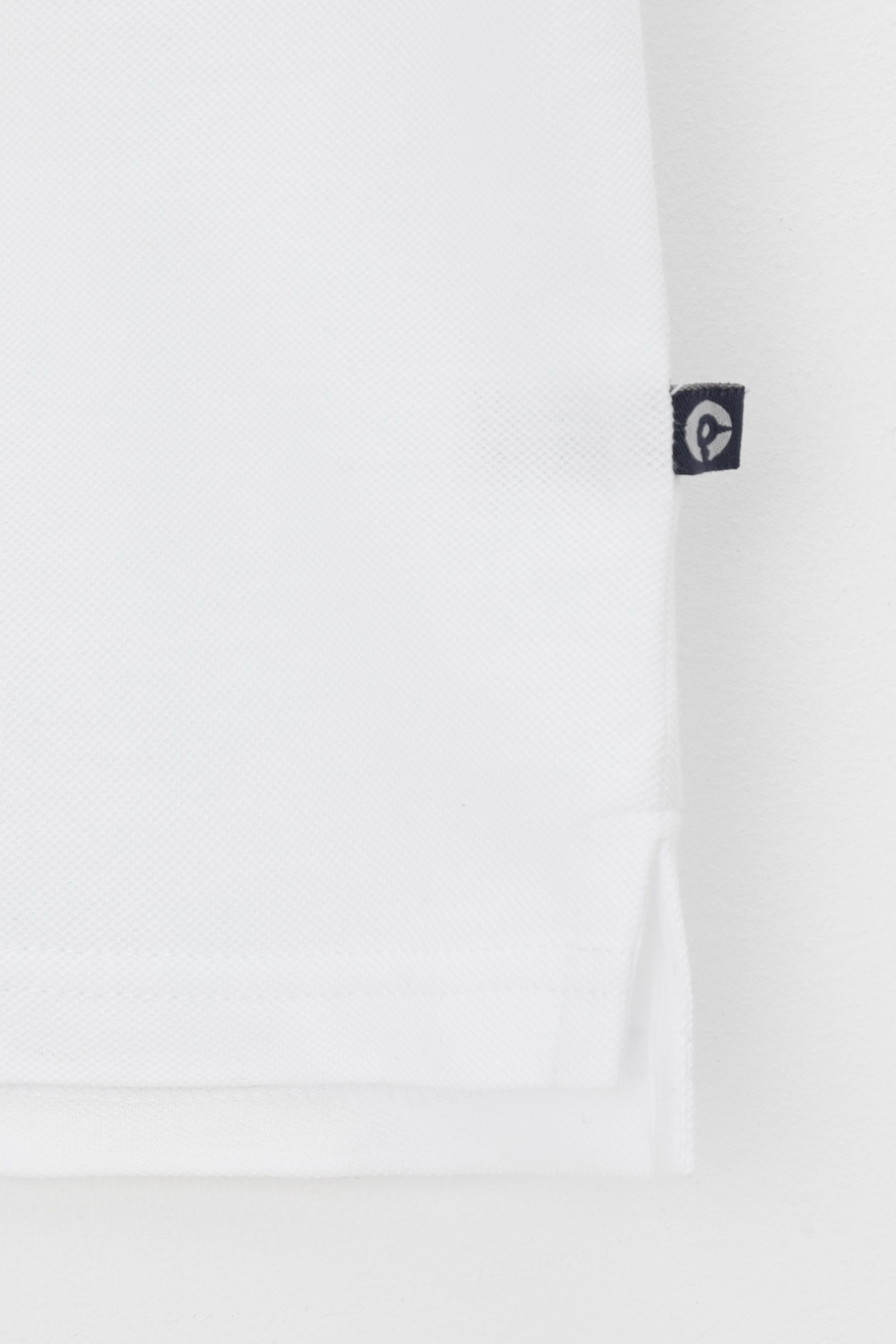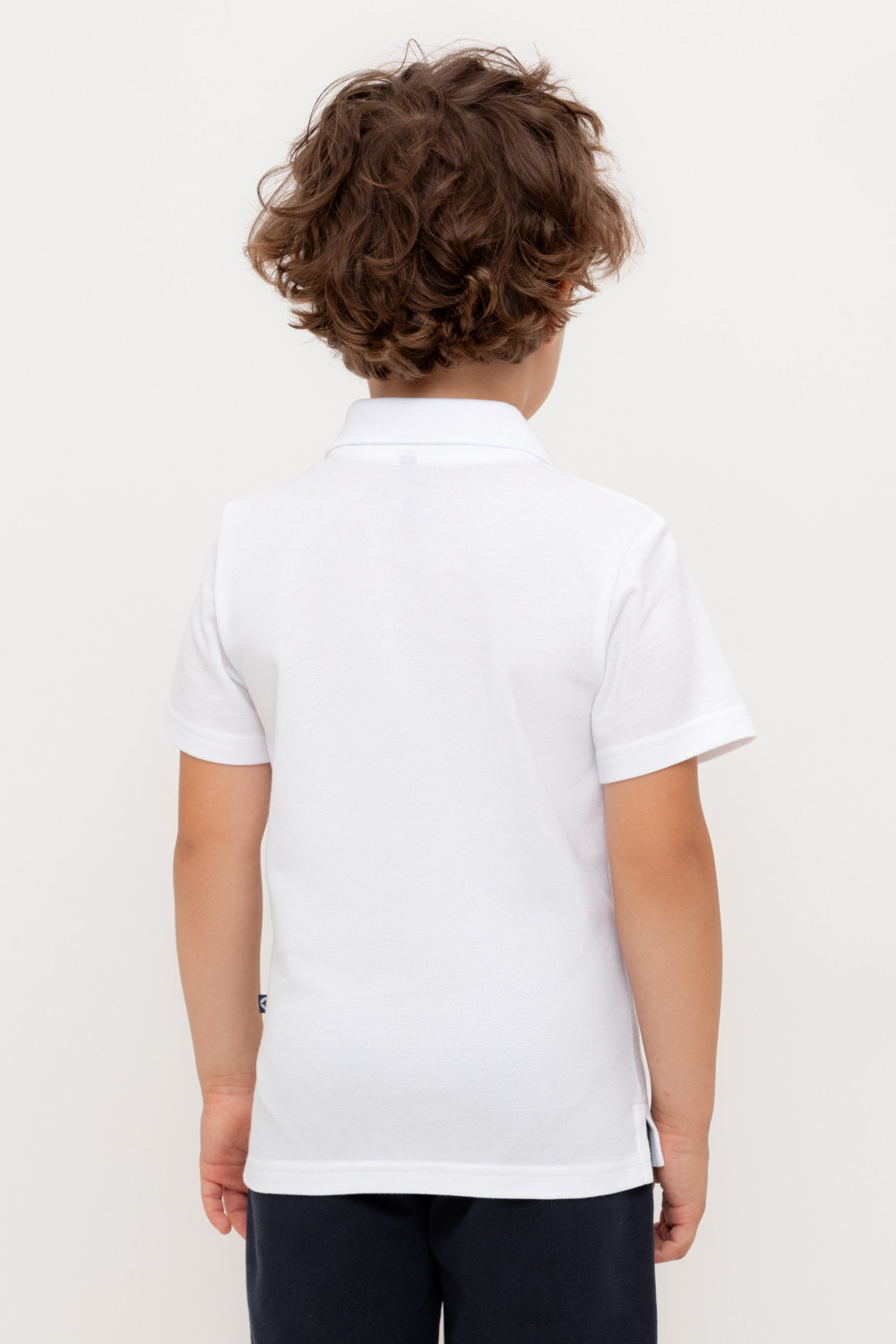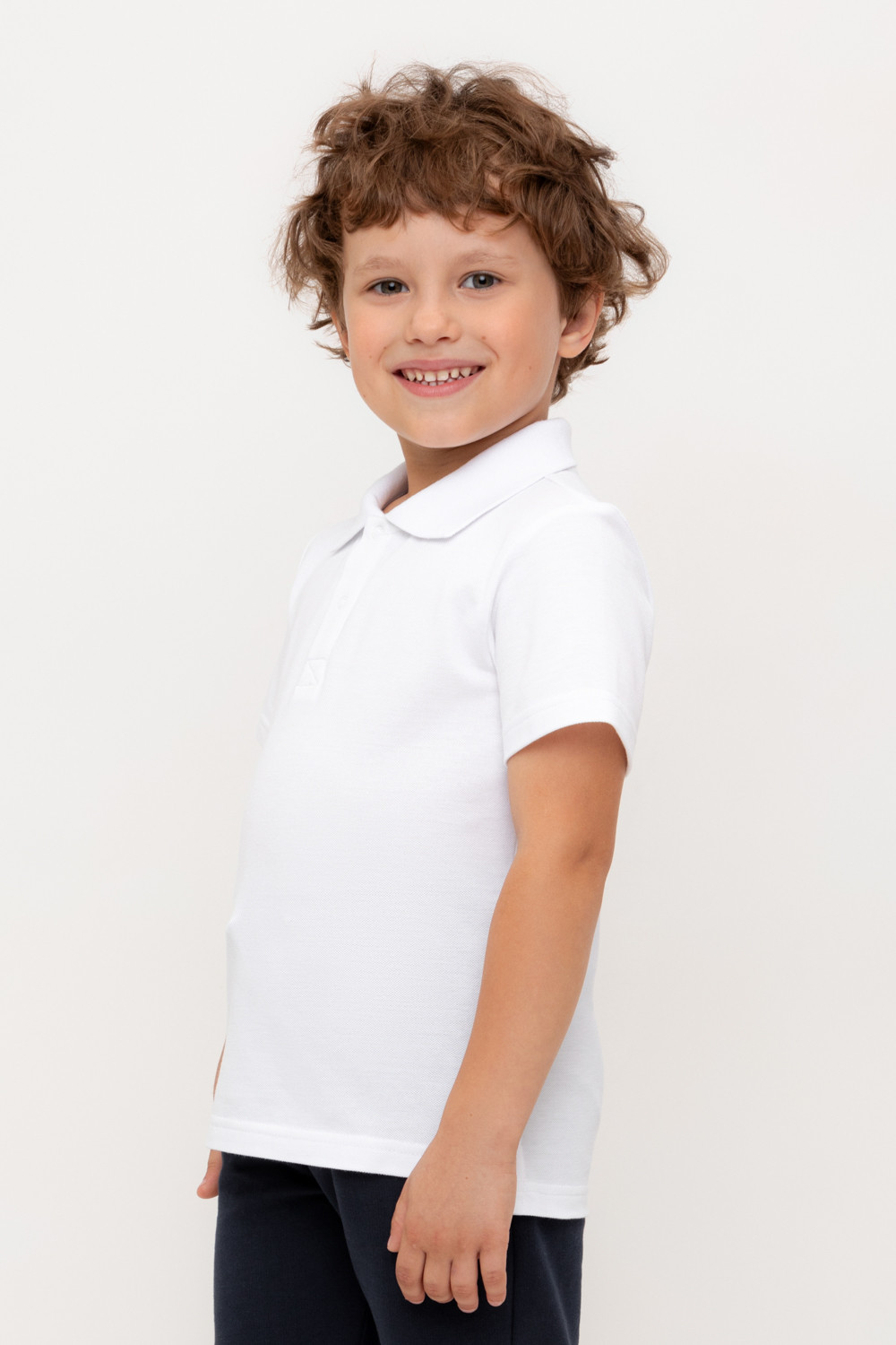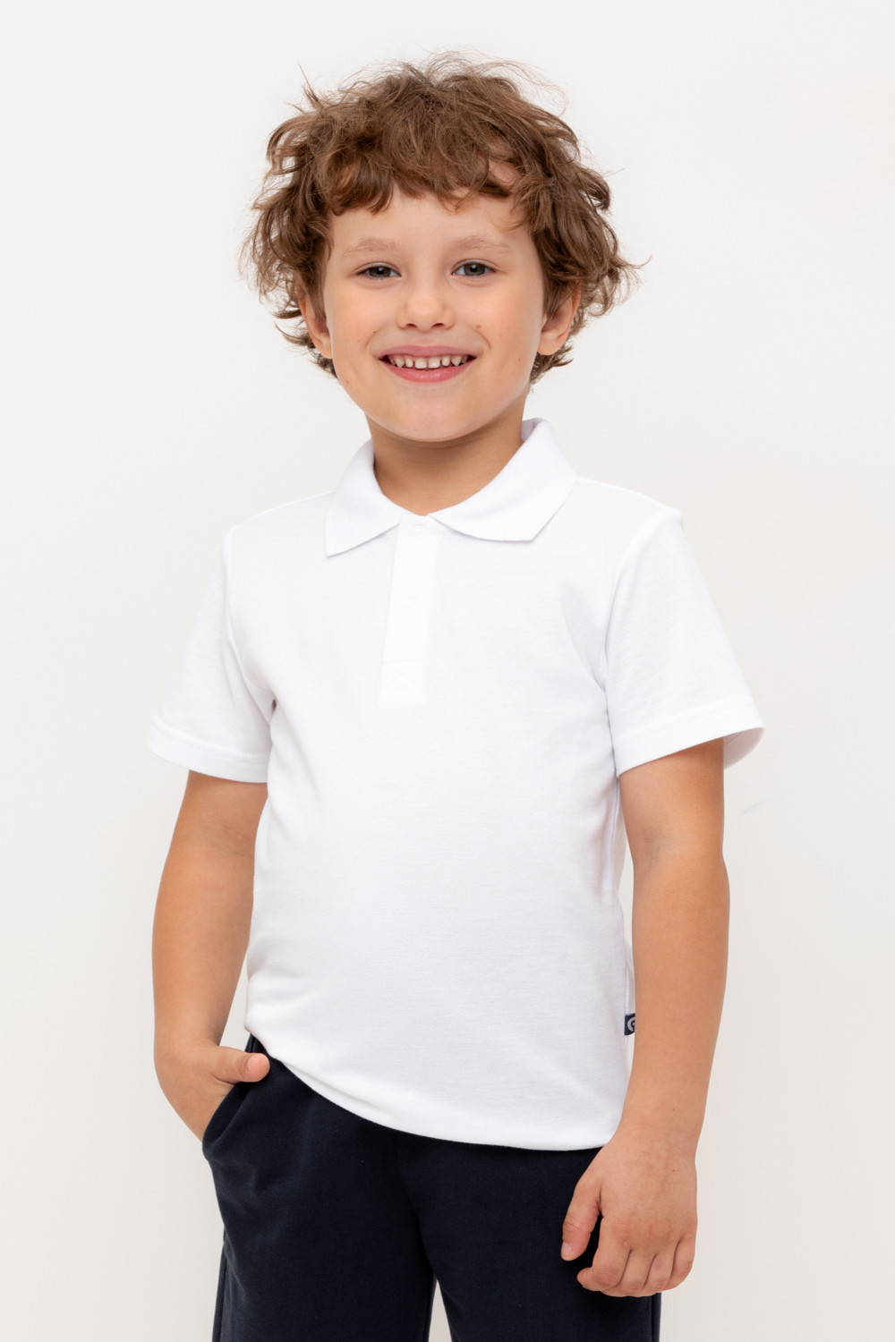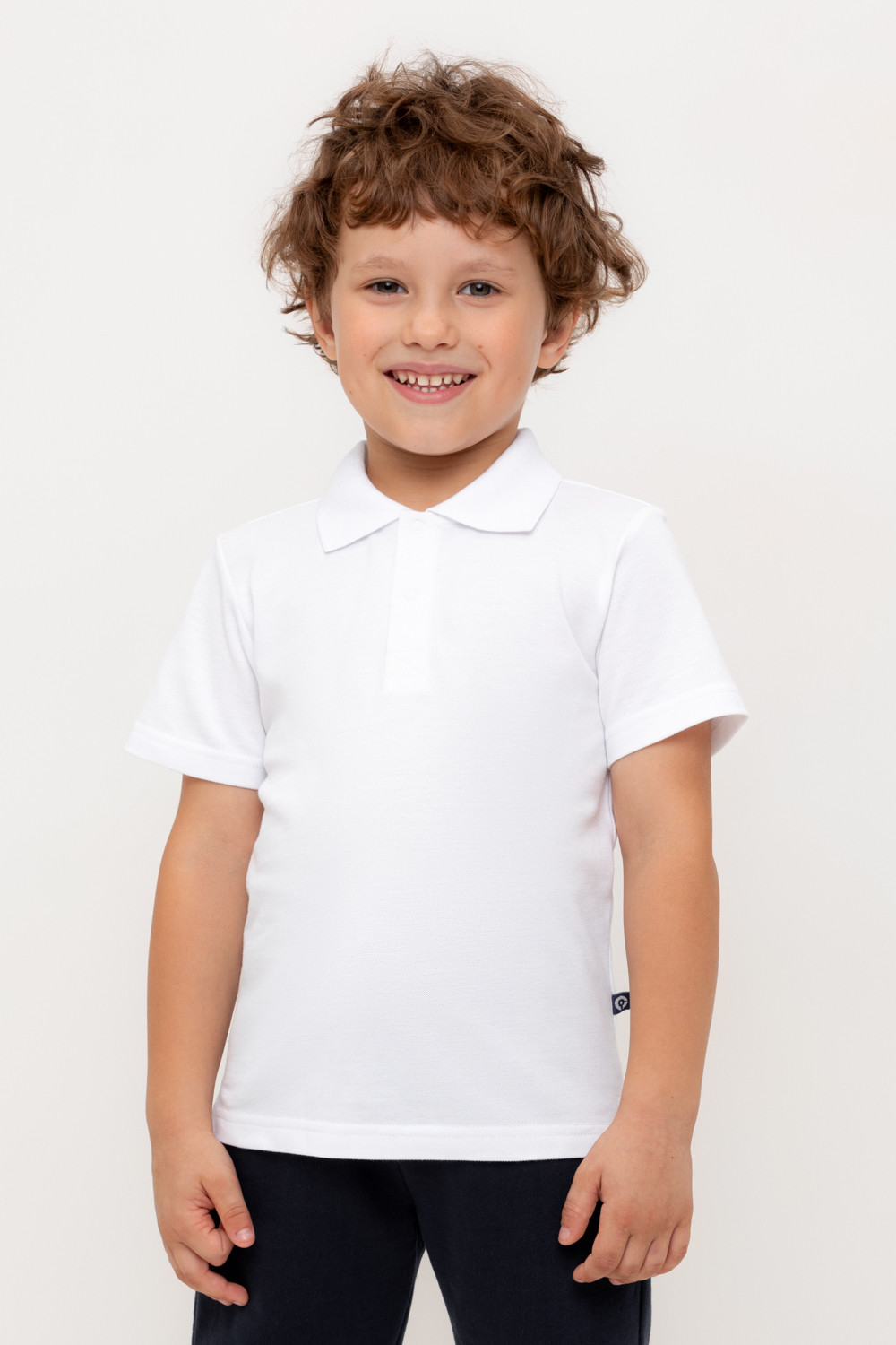 Поло для мальчика. Изготовлено из высококачественного трикотажного полотна пике. У изделия вязаный воротник и застежка спереди на две кнопки.