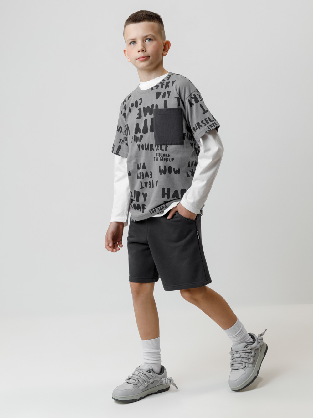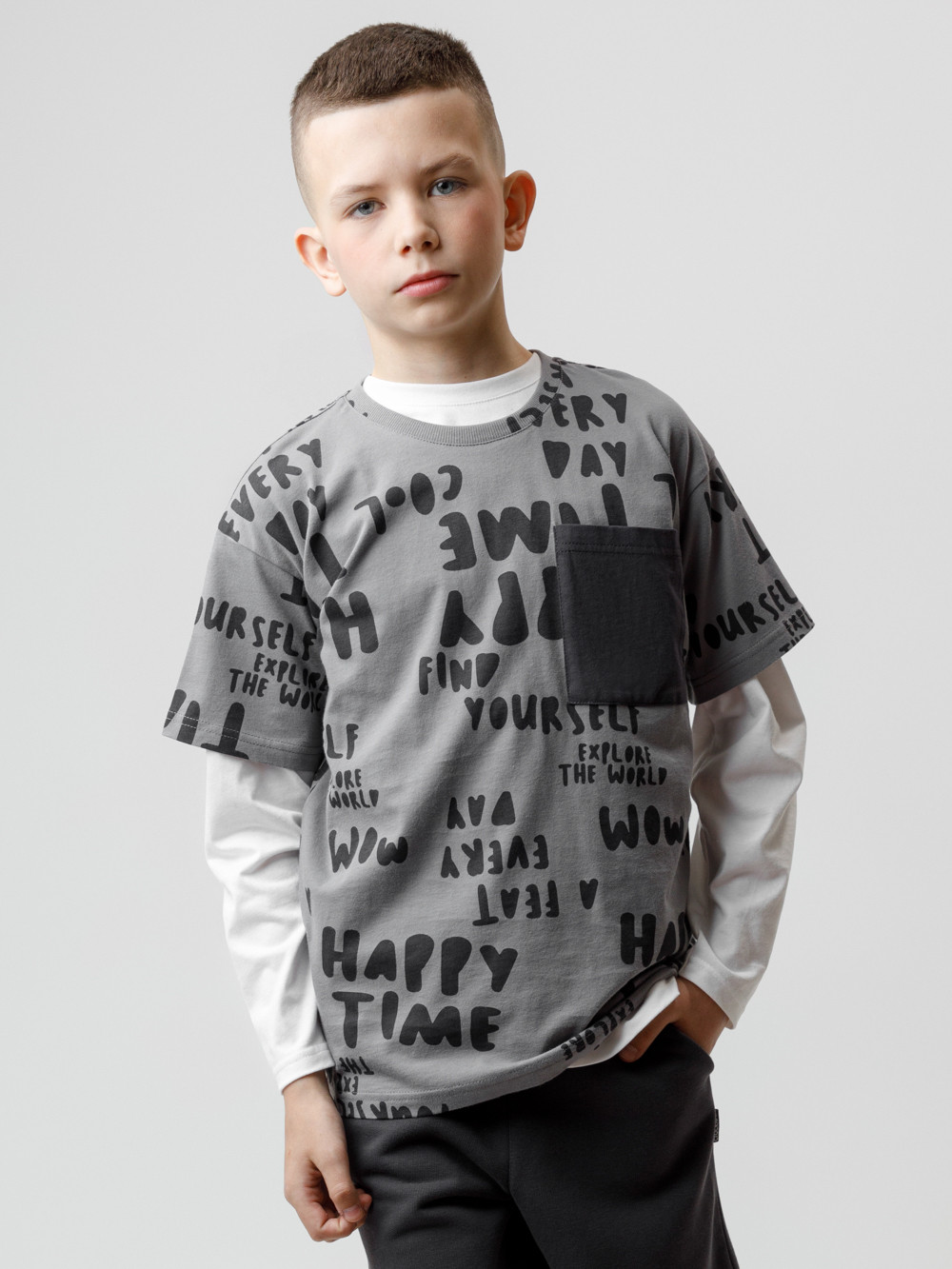 Футболка для мальчика из гладкого трикотажа, произведённого из высококачественного натурального хлопка. Оригинальный рисунок выполнен из стойких текстильных гипоаллергенных красителей. Изделие сохраняет цвет и форму после многократных стирок. Все трикотажные полотна производятся в соответствии с нормами швейцарского сертификата ЭкоТекс.