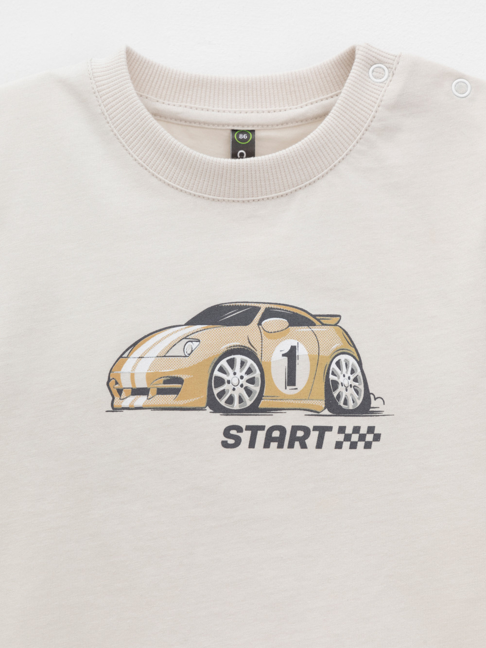 Футболка для мальчика из гладкого трикотажа, произведённого из высококачественного натурального хлопка. Для удобства одевания имеется застёжка на кнопки. Оригинальный принт выполнен из стойких текстильных гипоаллергенных красителей. Изделие сохраняет цвет и форму после многократных стирок. Все трикотажные полотна производятся в соответствии с нормами швейцарского сертификата ЭкоТекс.