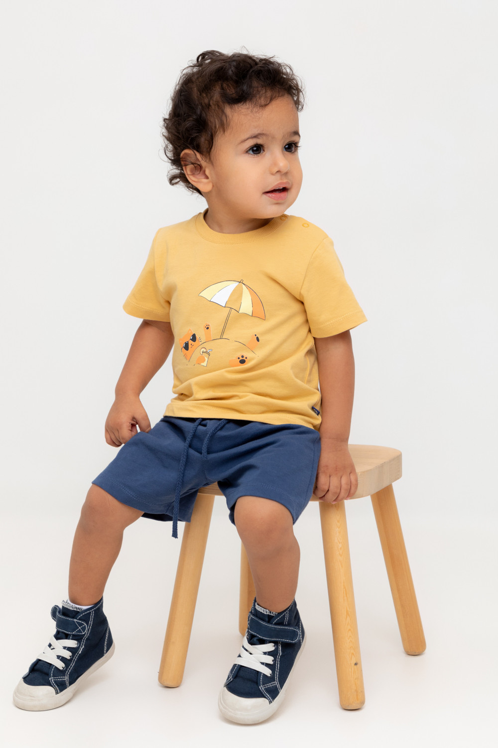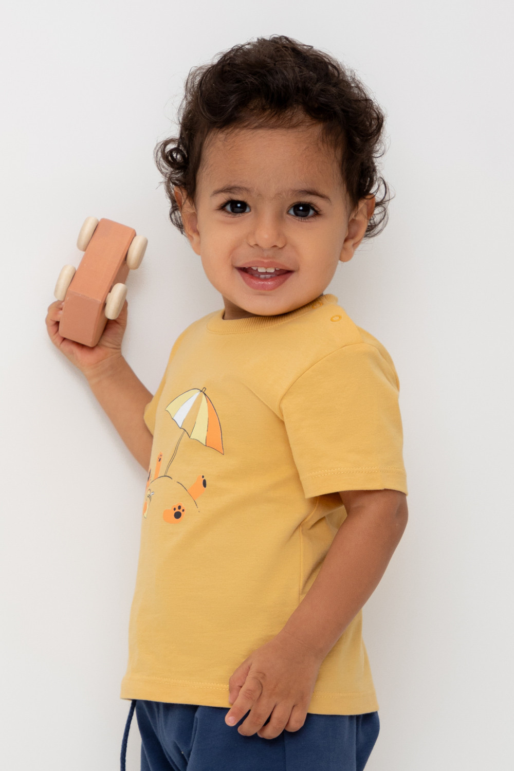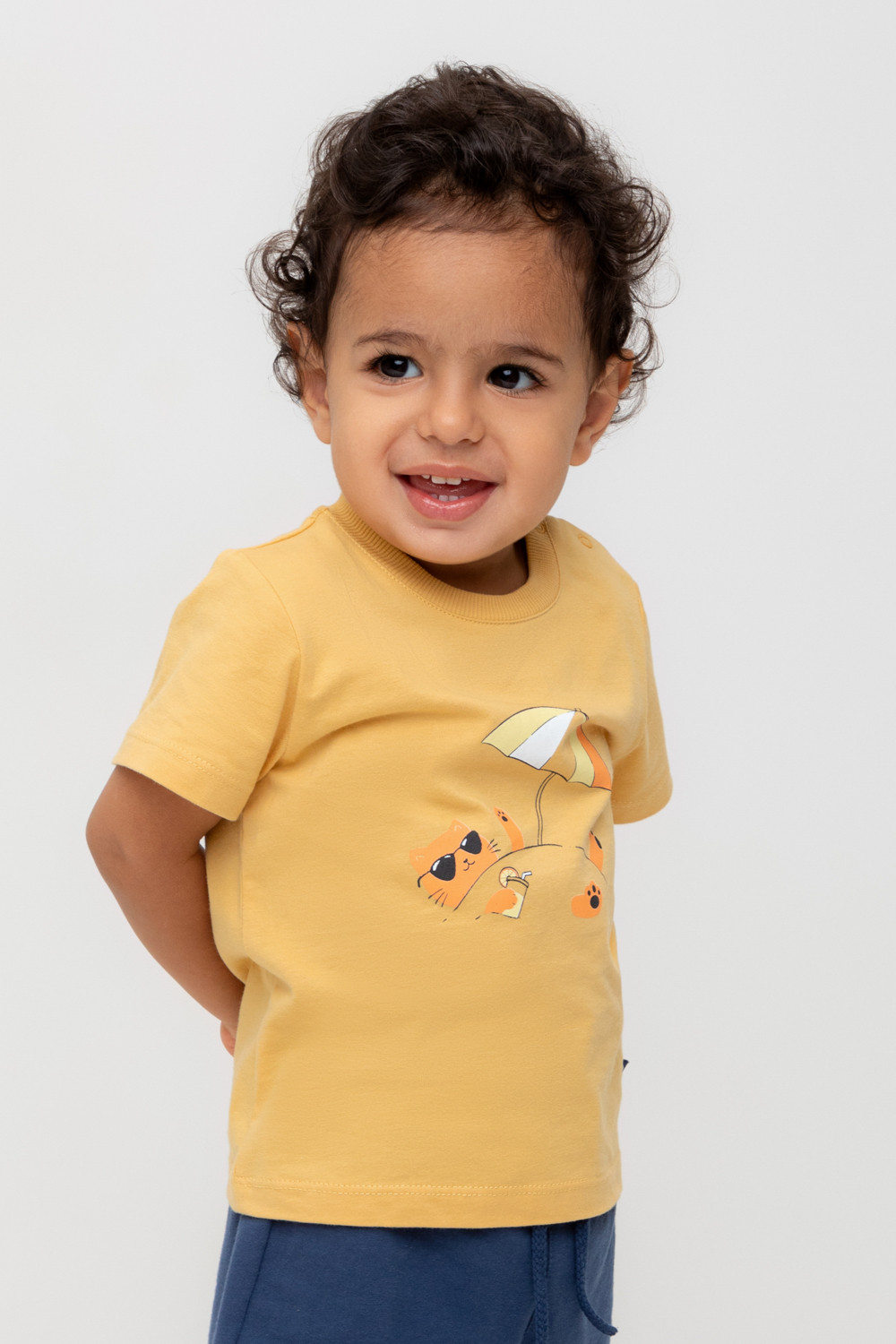 Футболка для мальчика из высококачественного трикотажного полотна. Оригинальный принт выполнен из стойких текстильных гипоаллергенных красителей. Для удобства на плече застежка на кнопки.
