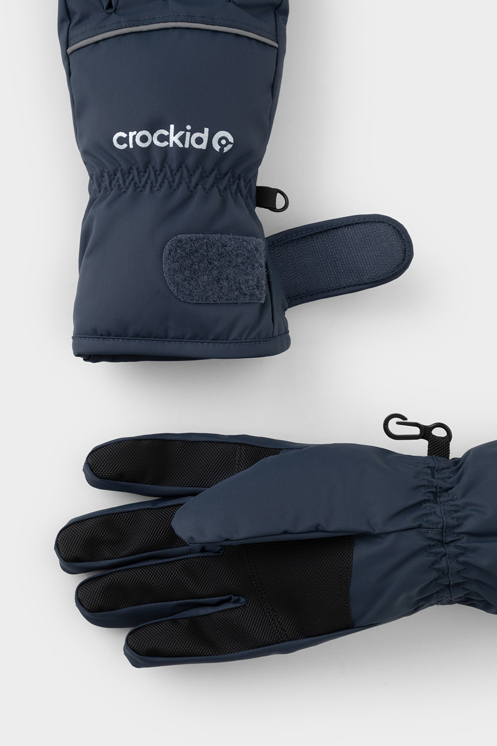Детские утеплённые перчатки из однотонной мембранной ткани со вставками из искусственной кожи. Манжеты регулируются по ширине с помощью липучки. Мягкий подклад из флиса. Пластиковый карабин для скрепления перчаток между собой. Светоотражающие элементы.