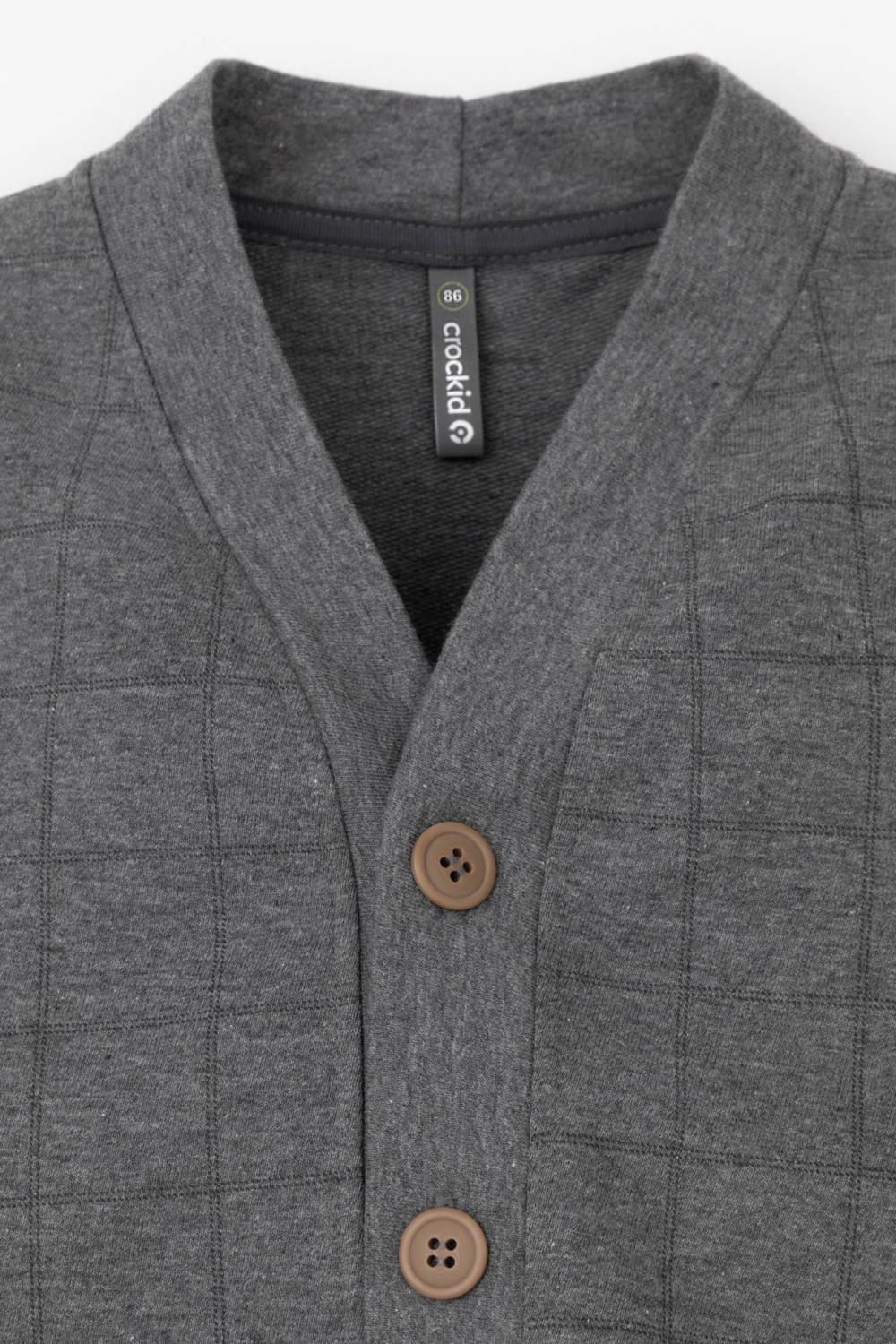Трикотажный жакет на пуговицах для мальчика, выполнен из набивного петельчатого футера.